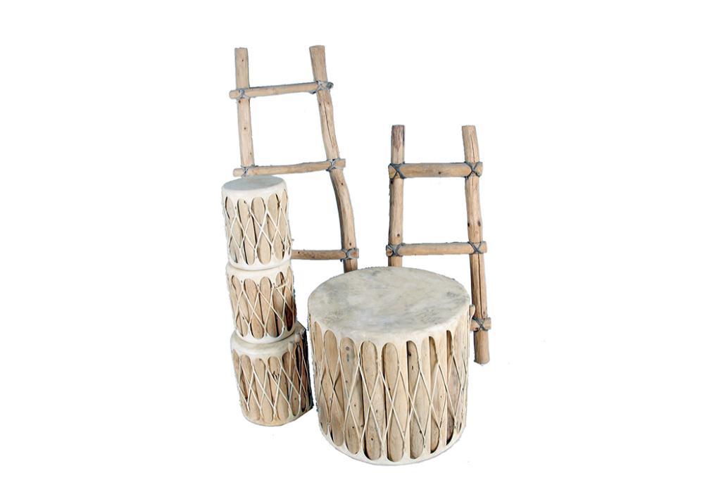 Set of Four Native American Drums And two ladder style rug or guilt holders.And two ladder style rug or guilt holders.