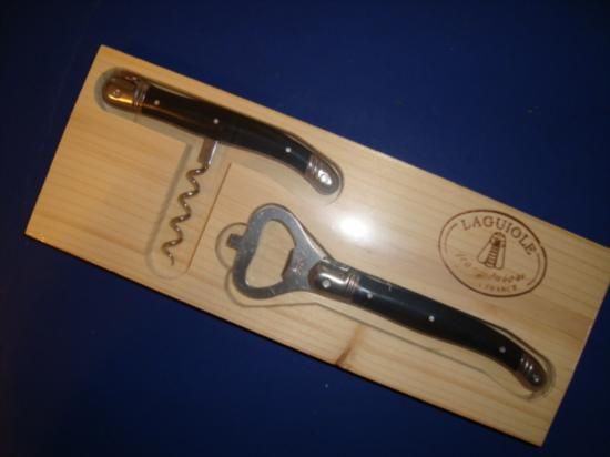 Set of French LAGUIOLE Corkscrew & beer opener designed by Jean Dubost with its "Authenticity Certificate". These pieces are dishwasher safe (acrylic handles with black color). DUBOST COLAS PRADEL was created in 1920, by Pierre DUBOST and his wife Marcelle COLAS PRADEL.Dubost Colas Pradel is situated in Viscomtat, a mountain village 15 km from Thiers, the capital of french cutlery.Ever since its foundation in 1920 by Pierre Dubost and his wife Marcelle Colas Pradel, the company has passed down a family tradition of fine workmanship and high quality products.It is now in the hands of the third (Philippe Dubost) and the fourth (Alexandre Dubost) generations.The company has grown in notoriety due to being attentive to the changing needs of consumers, and its faithful presence at international fairs since 1962.Since its creation Dubost Colas Pradel has been in a perpetual development.Despite having started in a small workshop, production grew rapidly under the inspiration of Jean Dubost, the founder's son, who gave his name to the famous flatware line and the world renowned kitchen knives.Quality is an integral part of the company policy.Products are quality controlled at each step of production, with care to assure good workmanship, in order to provide consumers with pleasure and the assurance of long lasting use.Ref #66130