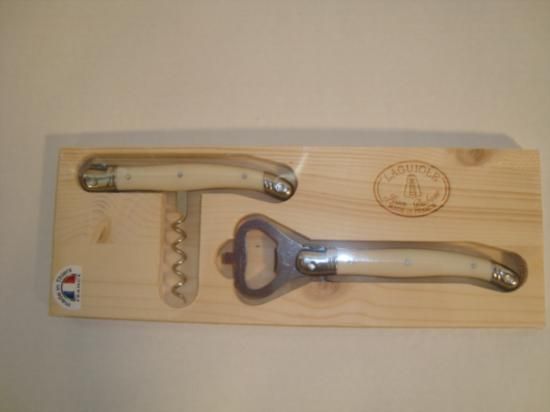 Set of French LAGUIOLE Corkscrew & beer opener designed by Jean Dubost with its "Authenticity Certificate". These pieces are dishwasher safe (acrylic handles with blue color). DUBOST COLAS PRADEL was created in 1920, by Pierre DUBOST and his