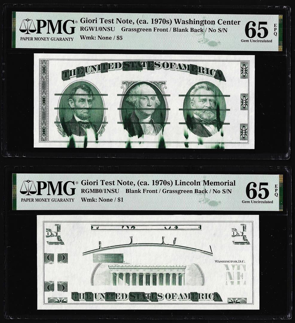 Set of Giori Test Note Washington & Lincoln Memorial PMG Gem Uncirculated 65EPQ