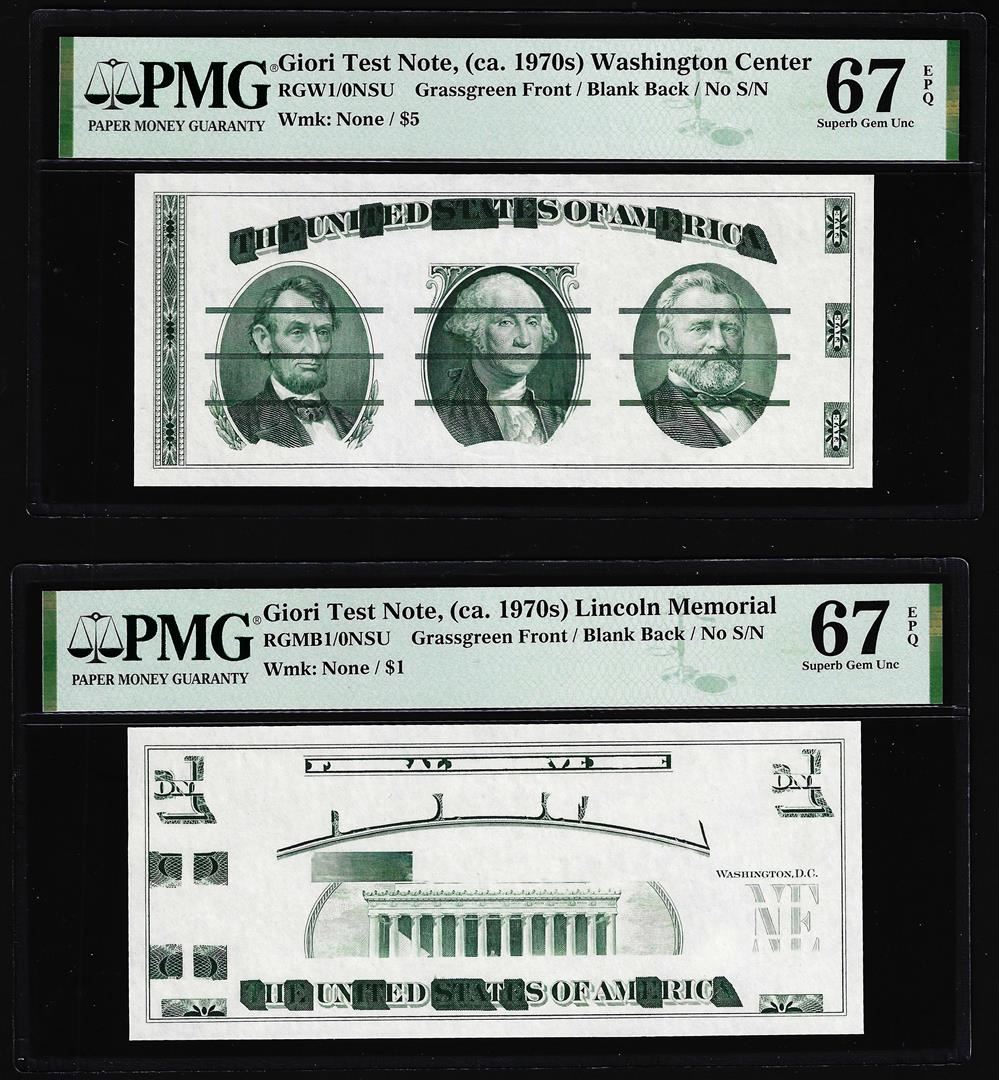 Set of Giori Test Note Washington & Lincoln Memorial PMG Superb Gem Unc 67EPQ