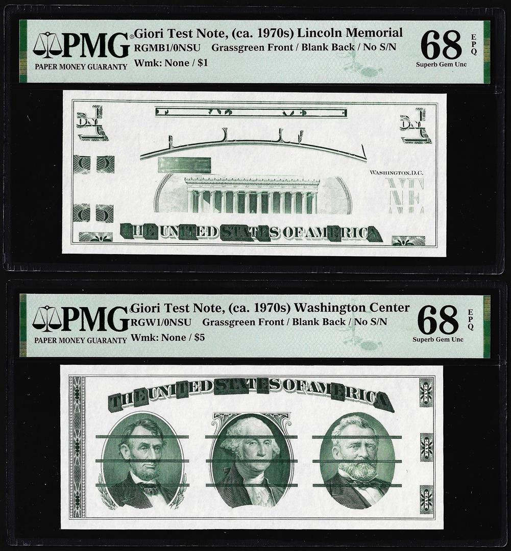 One Set of Giori Test Note Washington & Lincoln Memorial PMG Superb Gem Unc. 68EPQ. PMG Certified.