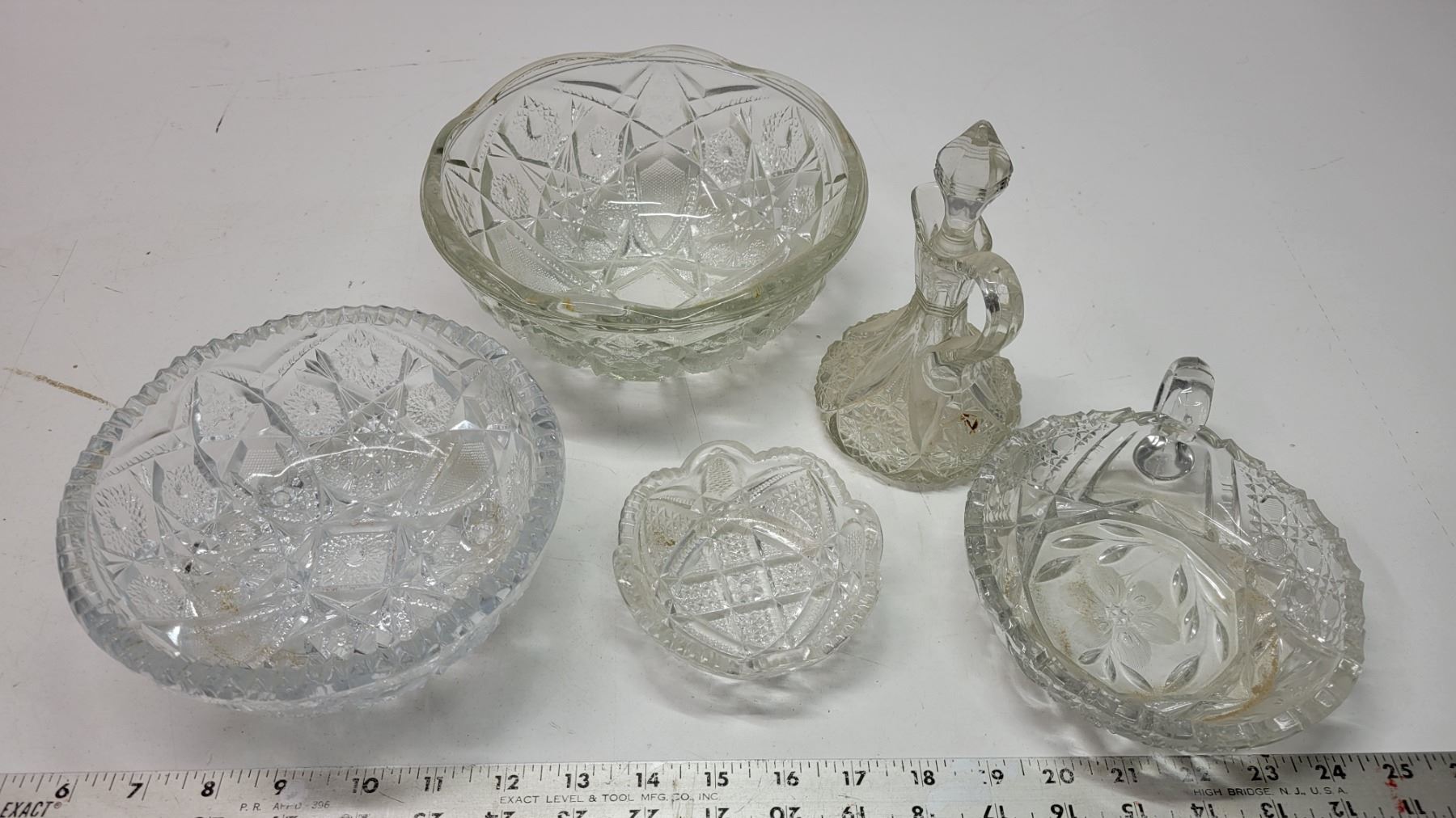 Set of Glass Bowls/Trays with Large Crystal Bowl