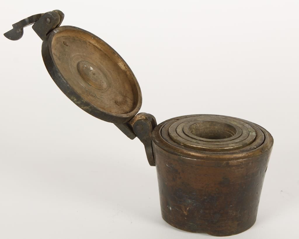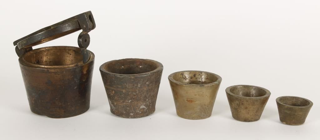 Circa early to mid 1800's. (1) large master cup with (4) nesting cups. Very heavy.