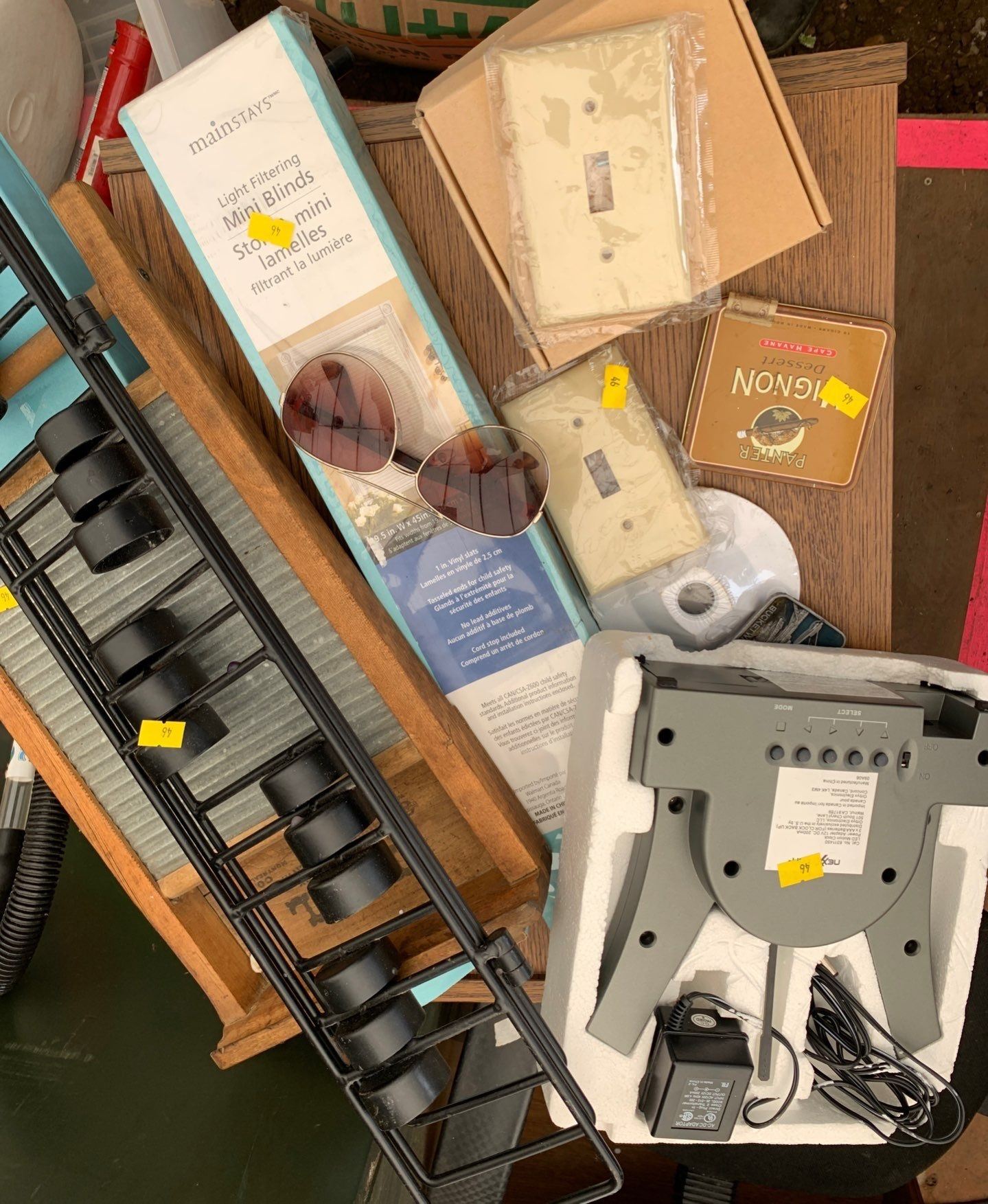 Set of Home Items Including Mini Blinds, NexxTech LED Motion Clock