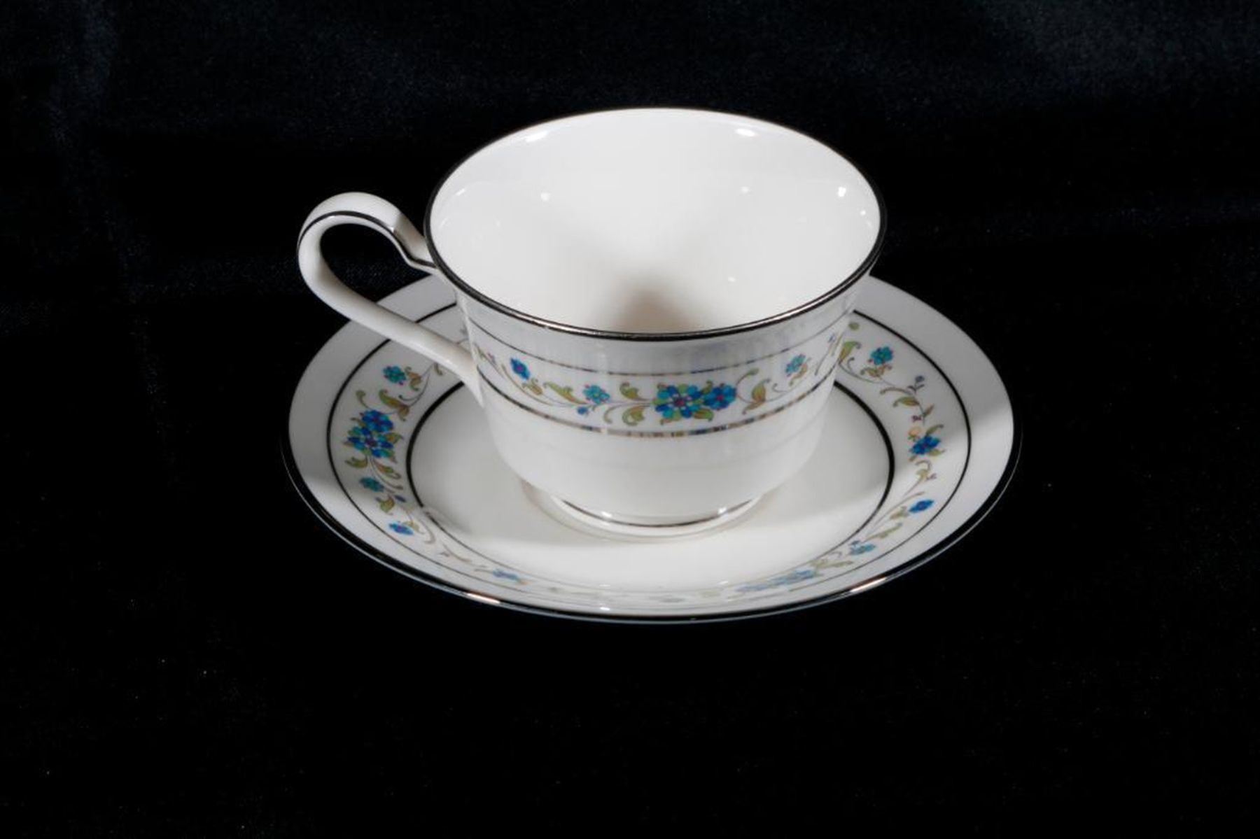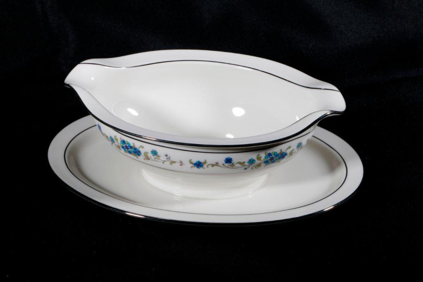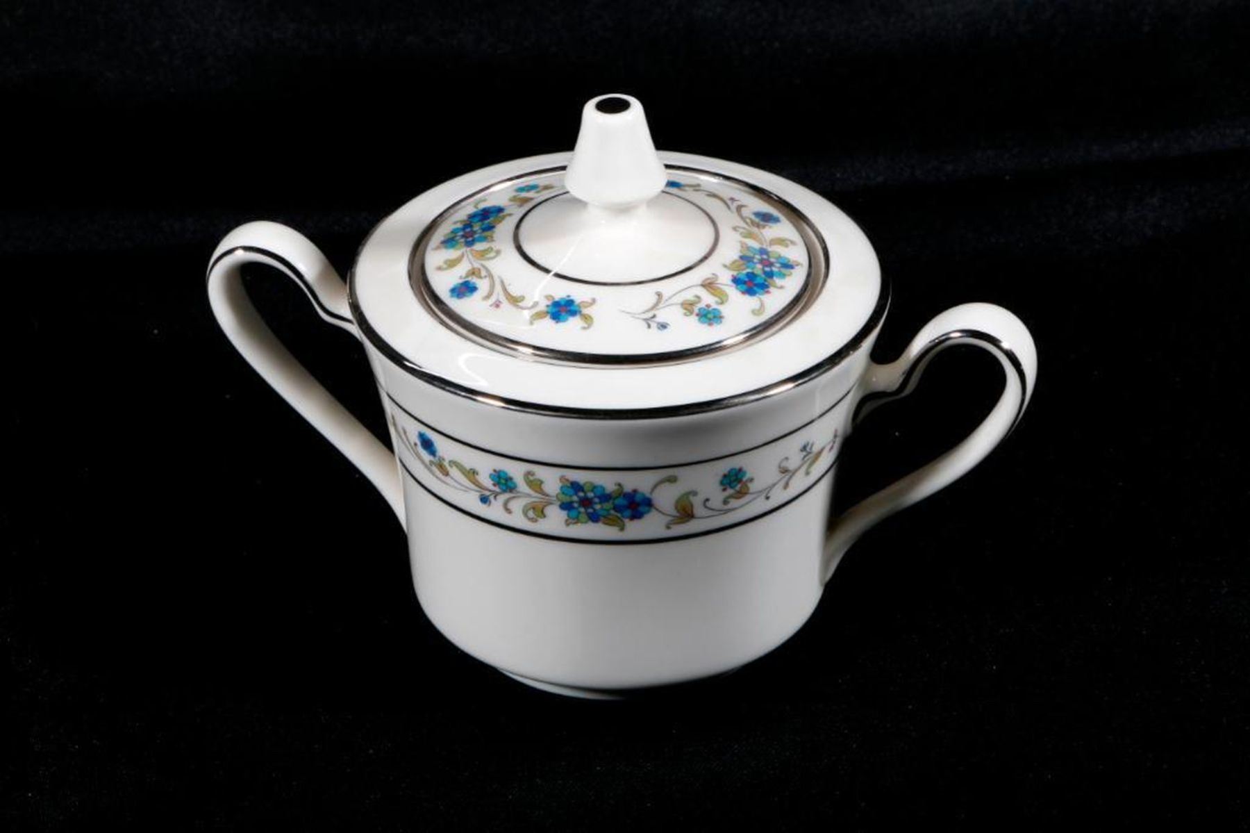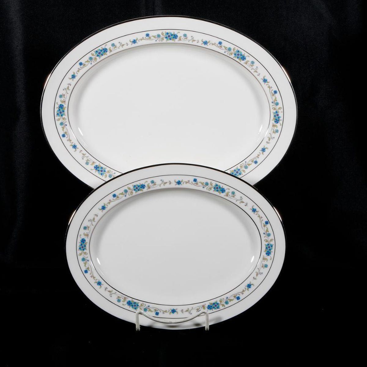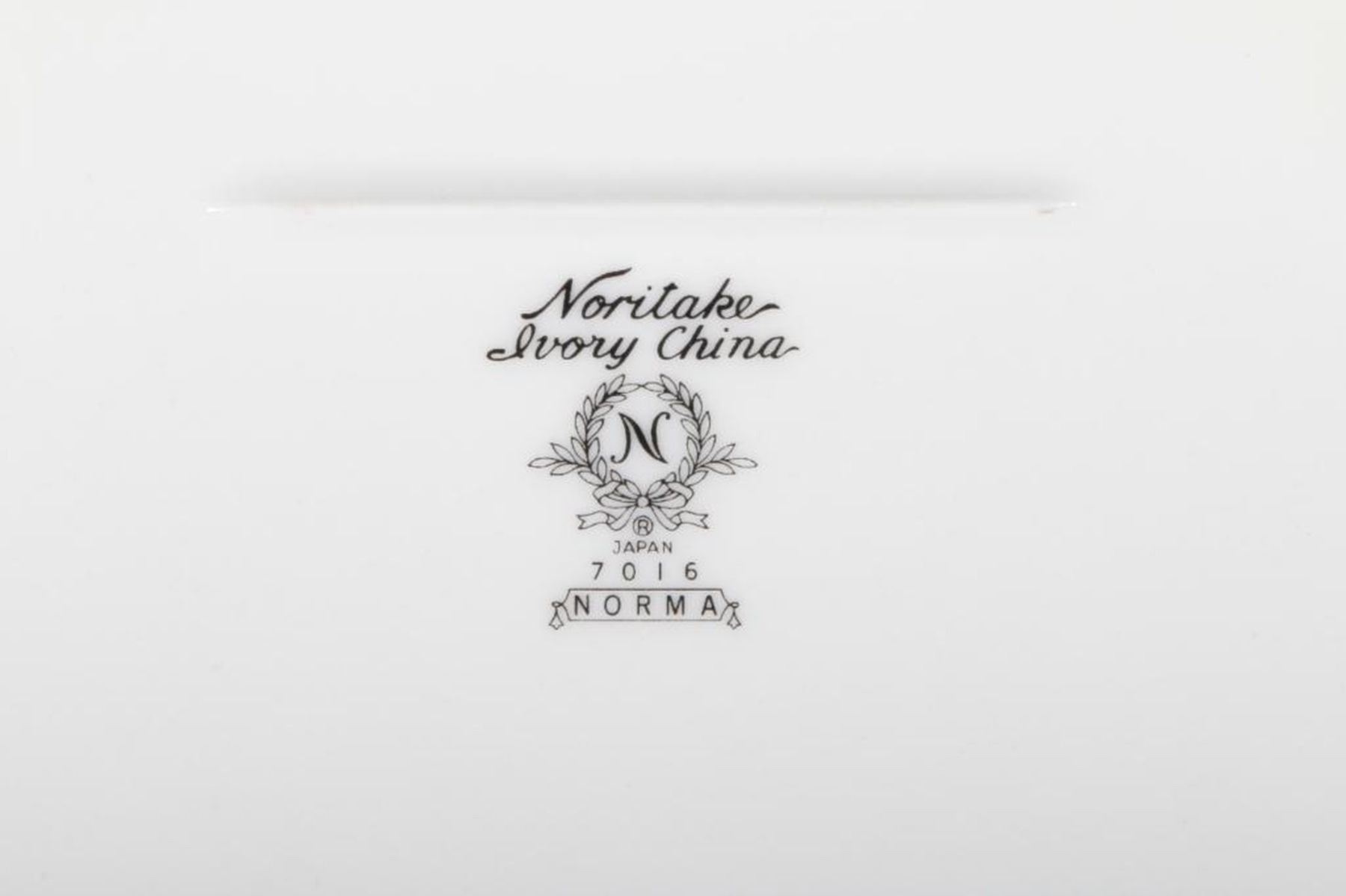 A 93 piece Mid century Japanese Noritake porcelain dinner set consisting of 12 dinner plates 12 salad plates, 12 teacups, 12 saucers, 12 finger bowls, 12 soup bowls, 12 base plates, 5 serving pieces, a creamer and sugar and a salt and pepper.