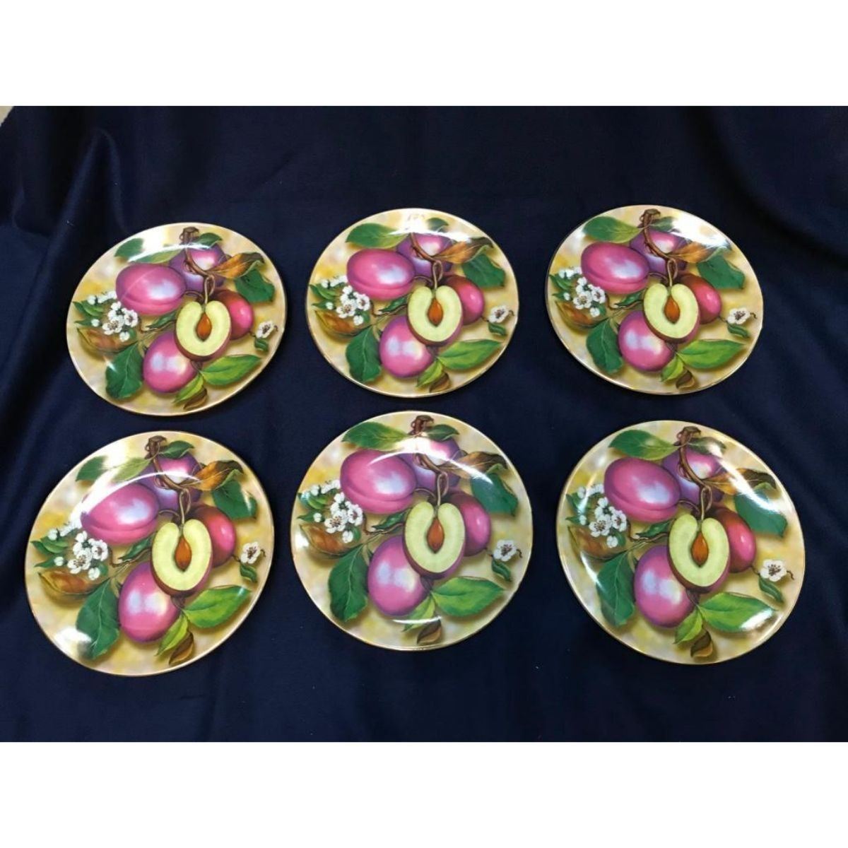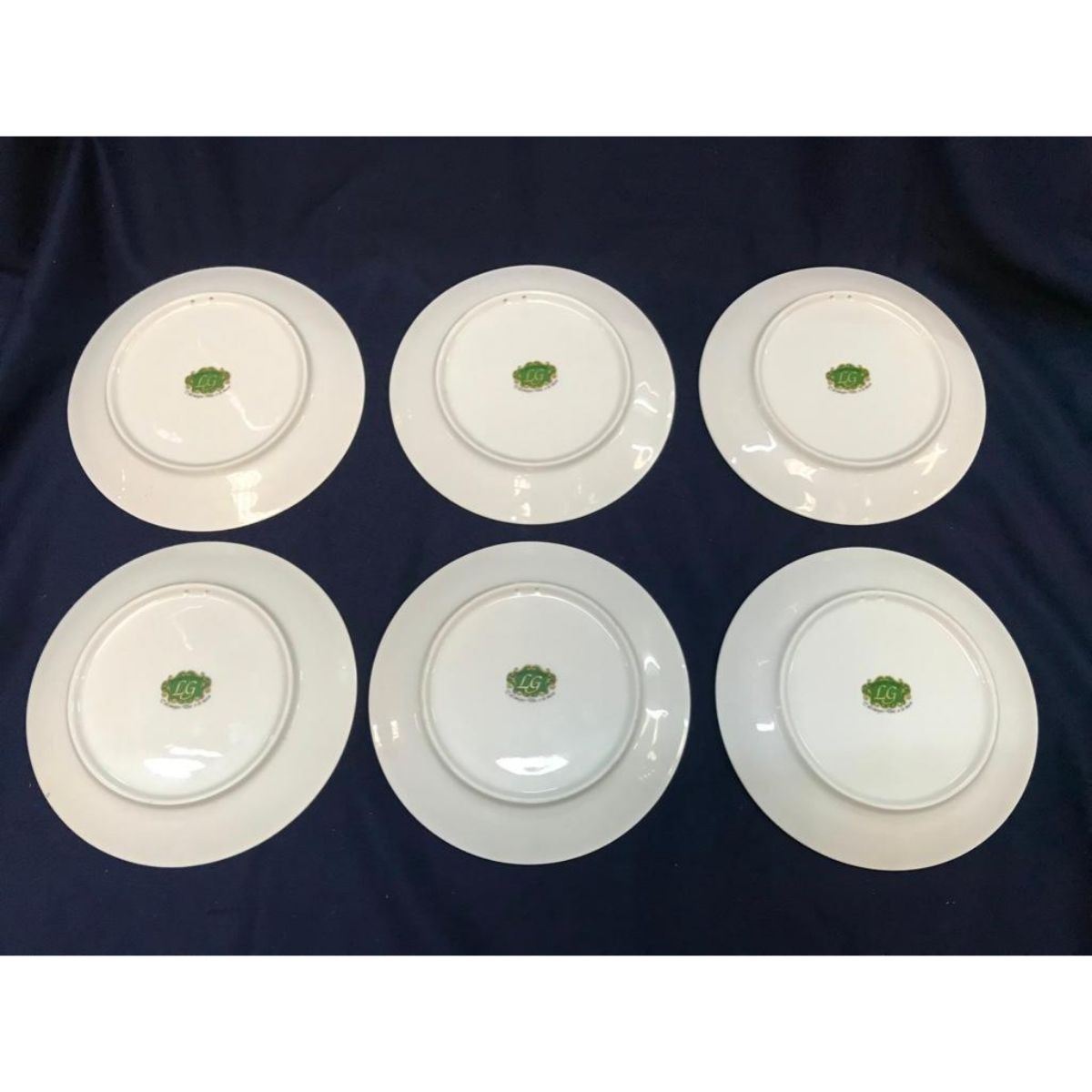 Set of 6 Limoges porcelain fruit, salad, dessert dishes, hand-painted with purple plums. On reverse - Porcelaine LG Limoges - Dec a la main.