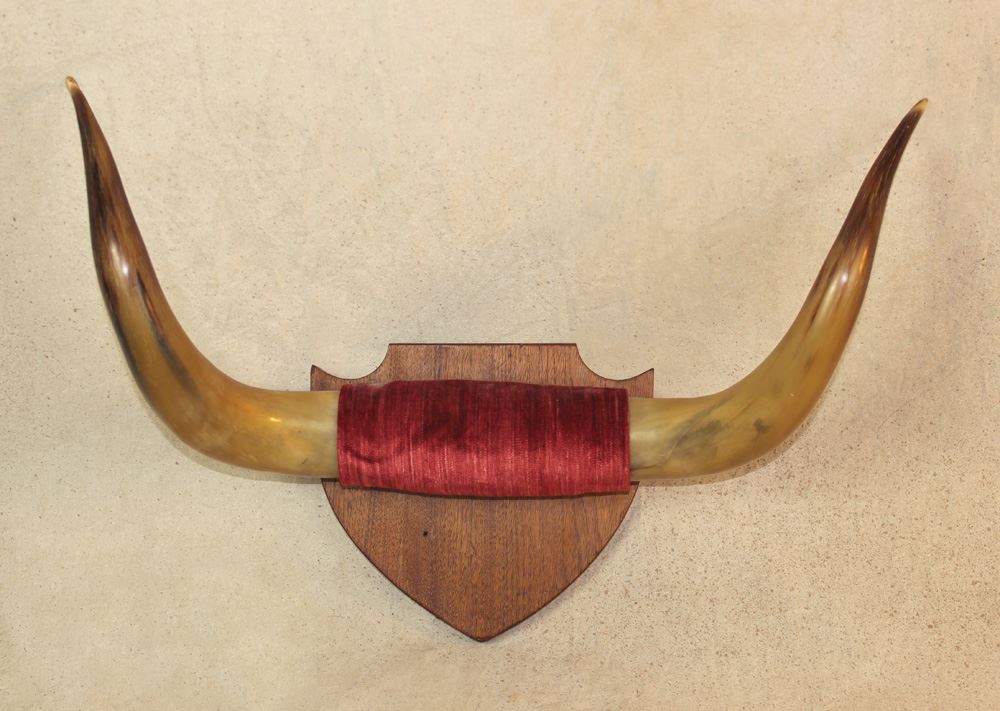 Great looking pair of vintage longhorns, mounted on an oak plaque. Measuring 24".