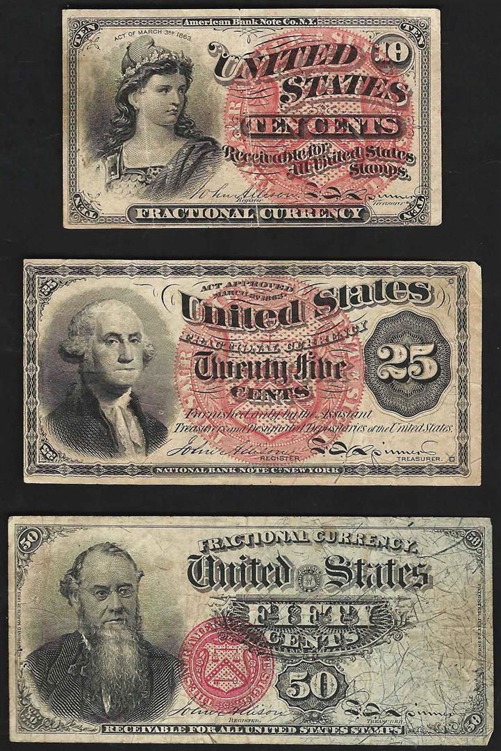 Set of March 3, 1863 10/25/50 Cent 4th Issue Fractional Notes
