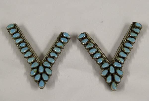 Set of Navajo Silver Turquoise Collar Tabs, measures approx. 3.75'' x 1'', silver and turquoise. SHI $15.