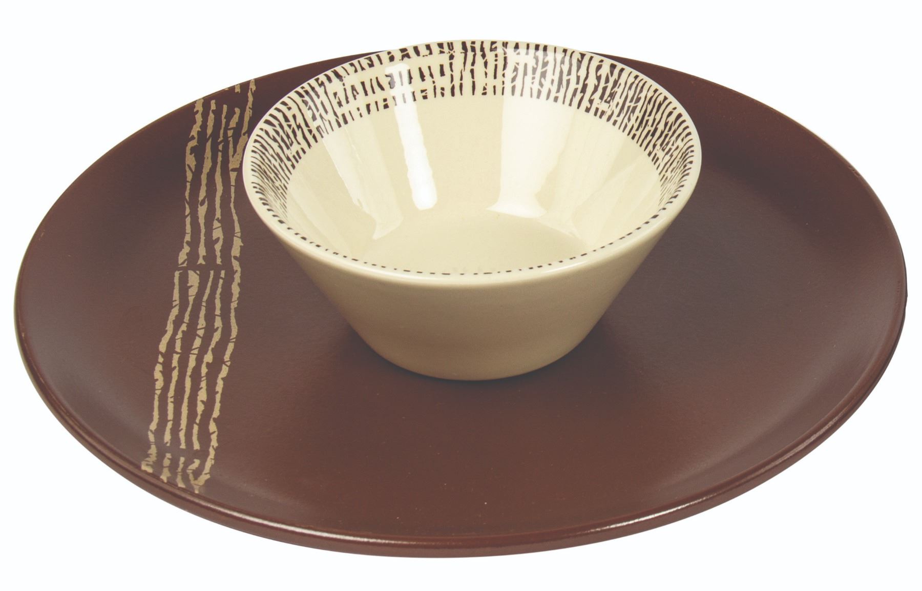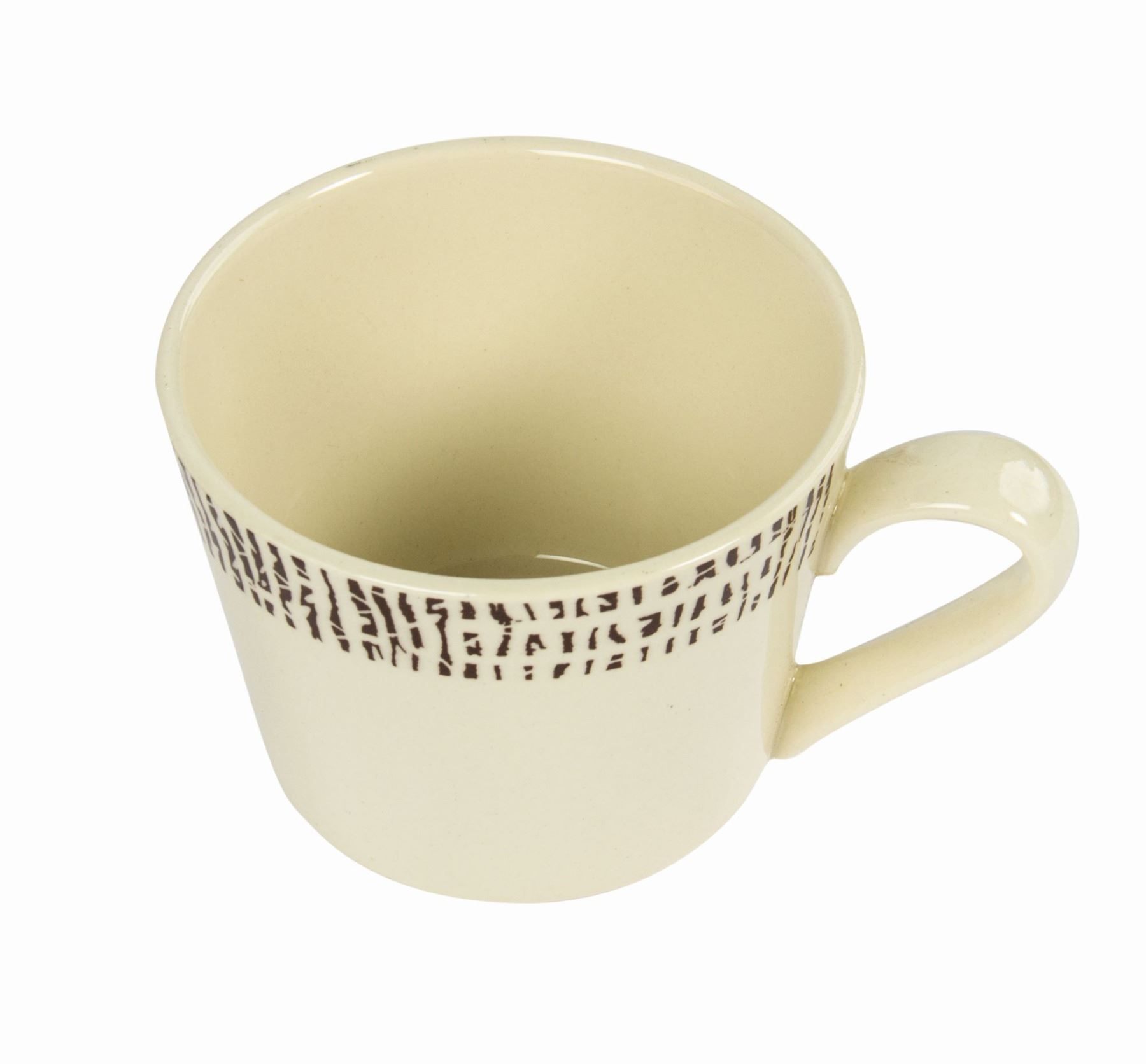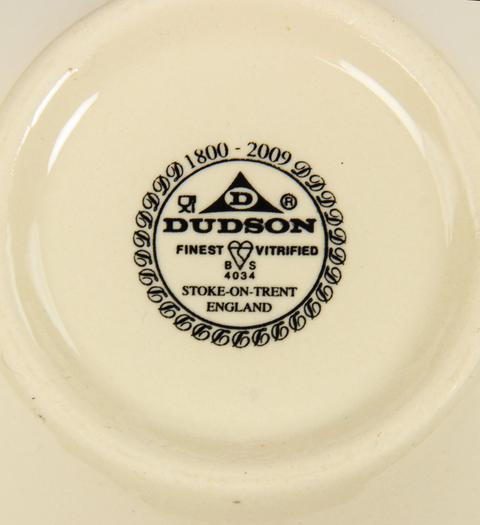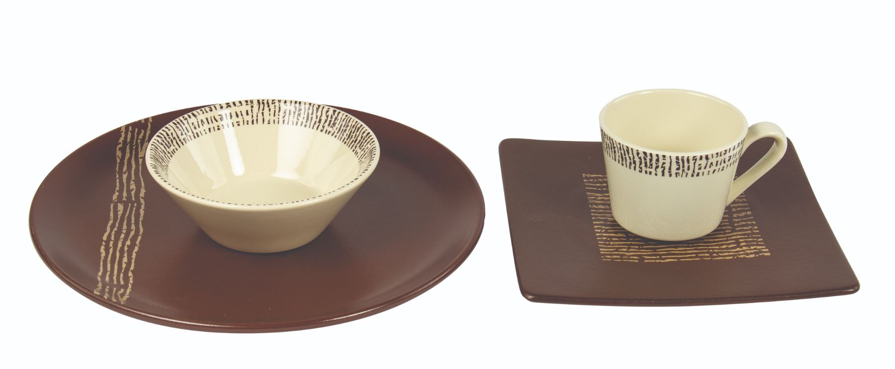 (Polynesian Village, c.2007-09) An original ceramic dishware set from the Ohana Restaurant at the Polynesian Village Resort. The set includes a cup, bowl, square plate, and circular plate. All the dishware has matching Polynesian patterns, and the items were created by Dudson China. The dishware ranges in size from the 3.5" in diameter cup to the 10.5" in diameter circular plate. The condition is very good overall with some minor surface wear that is consistent with restaurant use.