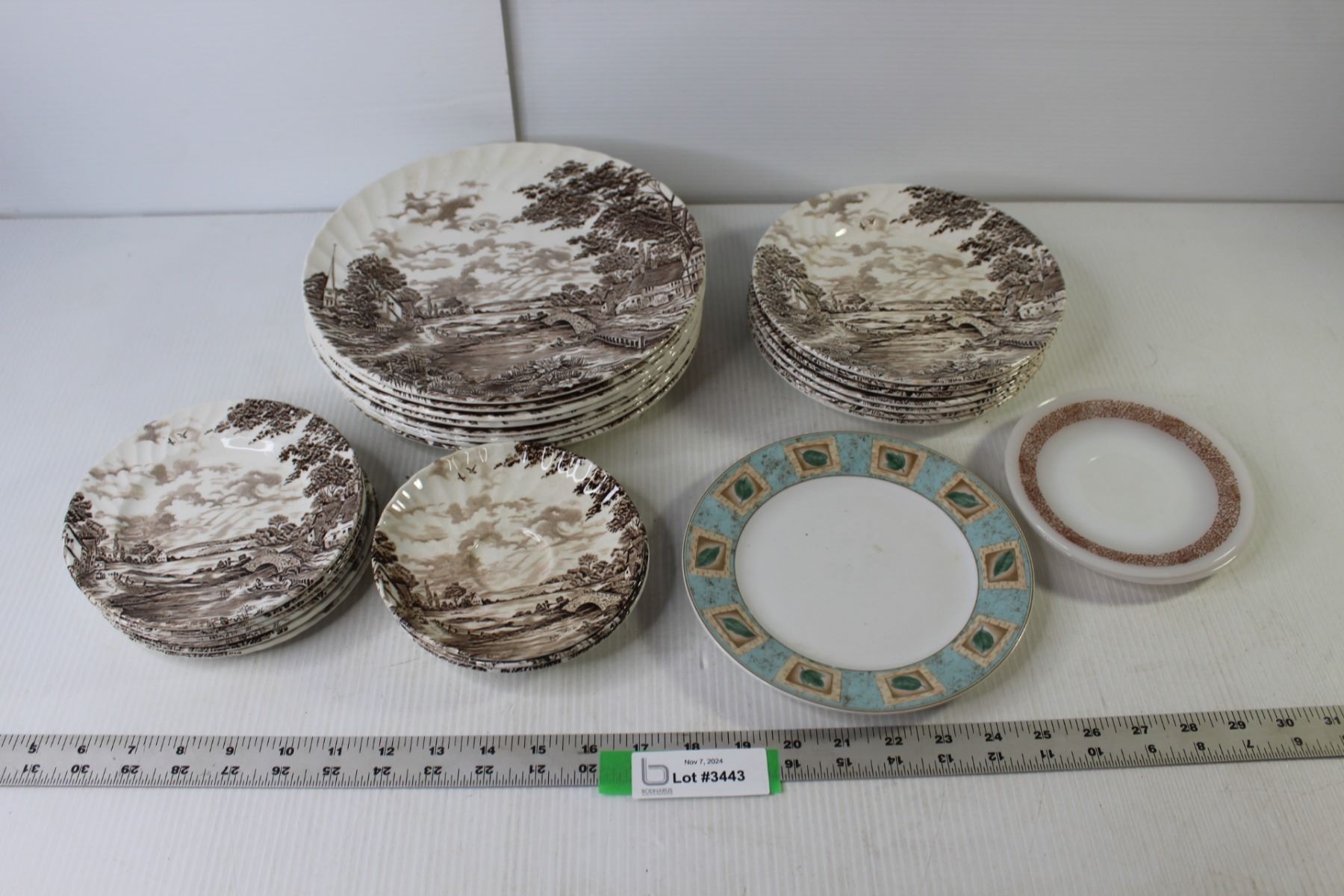 Set of Ridgway Dishes "Country Days" (8 Dinner Plates, 7 Medium Plates, 6 Small Plates, 3 Saucers), 3 Misc. Plates