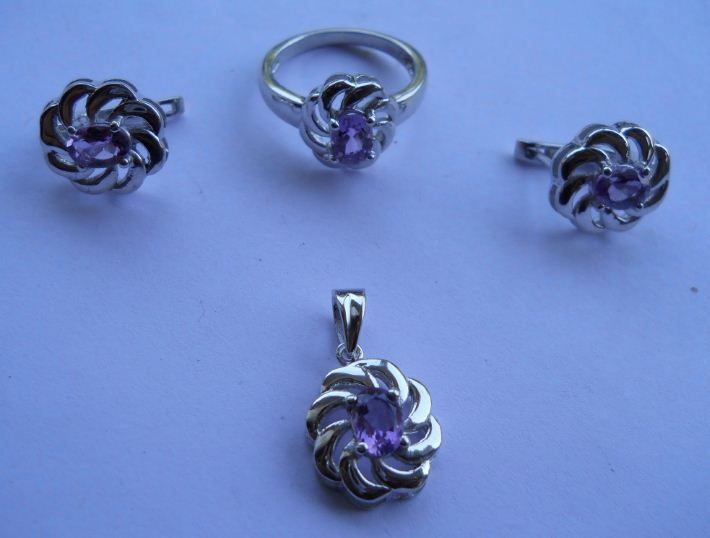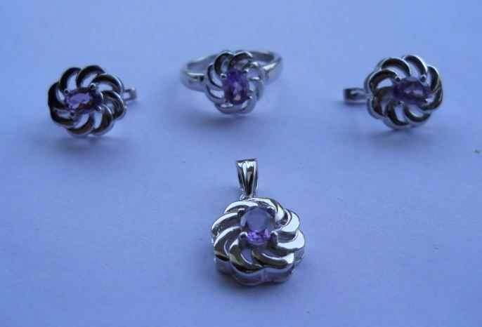 Set of Ring,Earring And Pendant, Stone: Amethyst, Weight : 11.840g, Made In 925 Silver