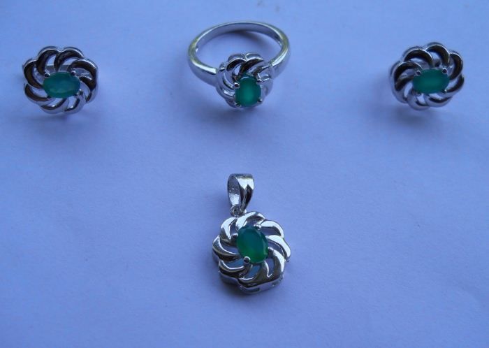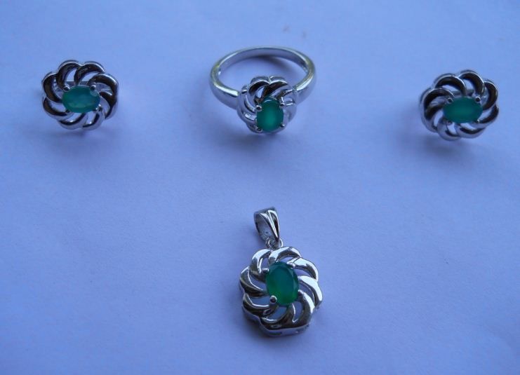 Set of Ring,Earring And Pendant, Stone: Green Onex, Weight : 11.070g, Made In 925 Silver