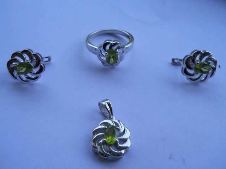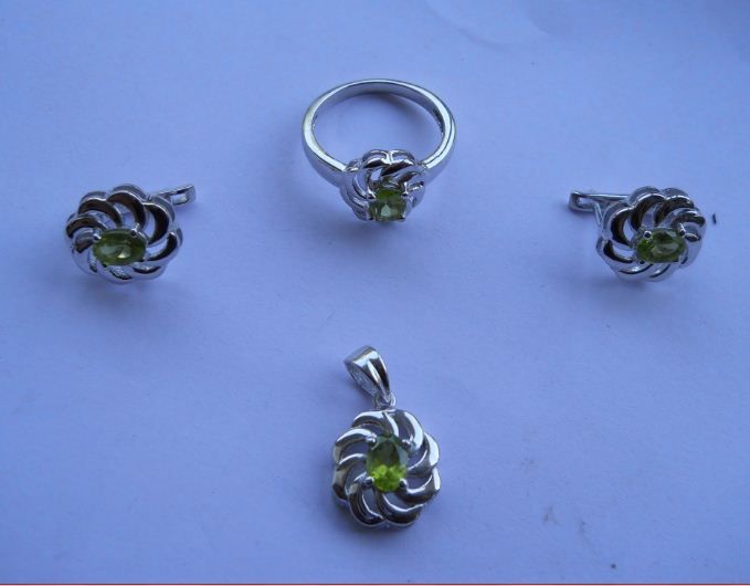 Set of Ring,Earring And Pendant, Stone: Peridot, Weight : 11.270g, Made In 925 Silver