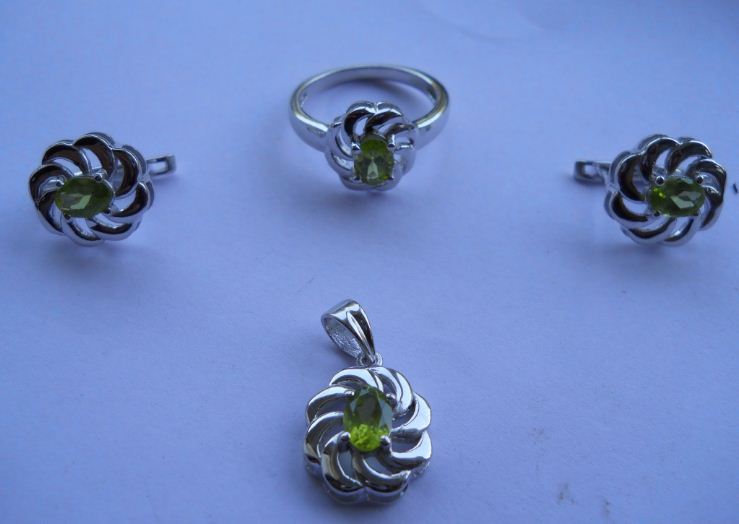 Set of Ring,Earring And Pendant, Stone: Peridot, Weight : 11.270g, Made In 925 Silver