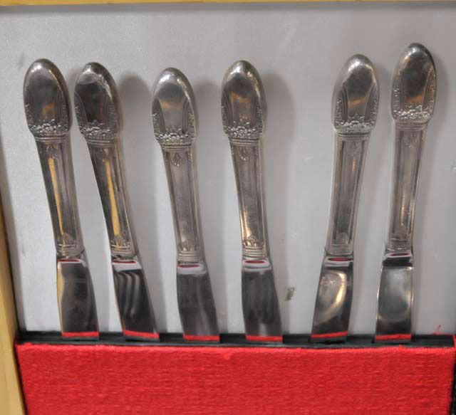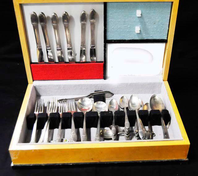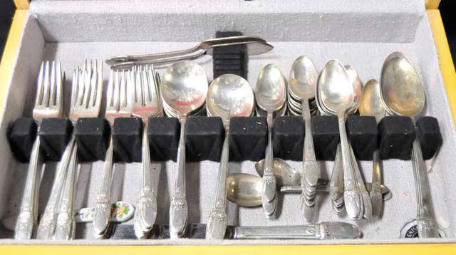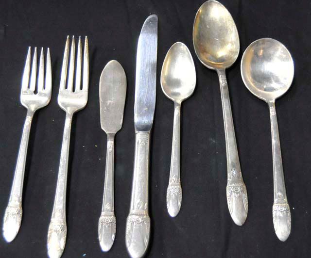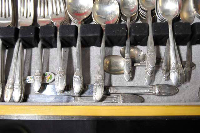 Including: 69 pieces. 10 forks, 10 dessert forks, 23 teaspoons, 12 soups, 8 knives, 3 serving spoons, 2 butter knives & 1 sugar spoon. From a Sutton Place, NYC estate. Please read our terms of sale.