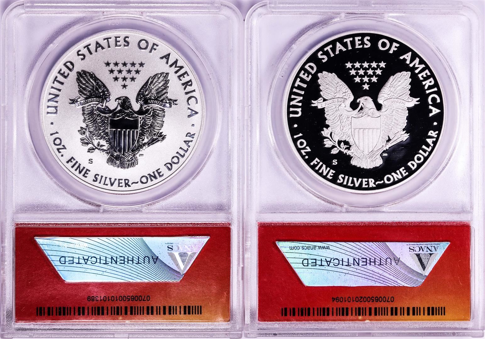 One Set of San Francisco 2012-S $1 Proof American Silver Eagle Coins ANACS PR70/RP70 FDOI. ANACS Certified.