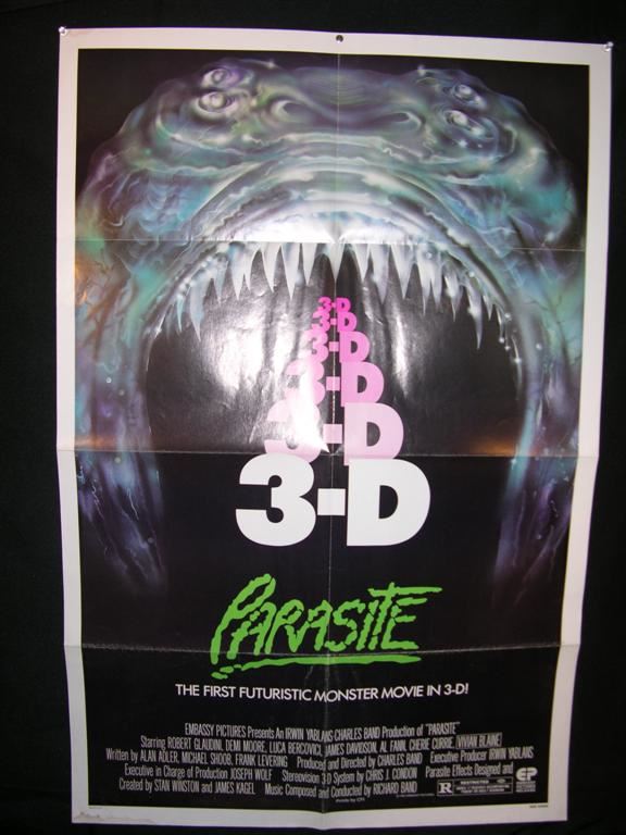 Lot of four folded horror and sci-fi one sheet posters. These are Project X, Parasite, Puppet Masters (German mini) and The Prophecy. (Puppet Master 33x23.5, All Others 40x27)