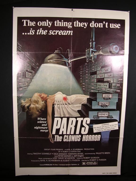 Lot of three folded horror and sci-fi one sheet posers. These are Parts: The Clonus Horror, Out of the Darkness (duotone in black and pink) and Prime Evil. (40x27 each)