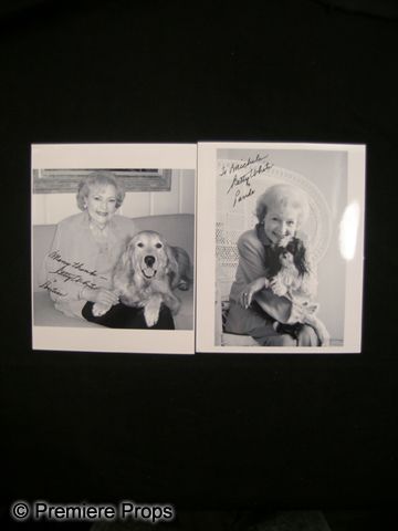 A pair of glossy, b&w autographed photos featuring one of comedy's most endearing stars, Betty White. The photos feature Ms. White with two of her beloved dogs, and are signed 'To Michelle. Betty White & Panda,' and 'Many Thanks - Betty White & Pontiac.' (photos measure approx. 8" x 10" ea.)