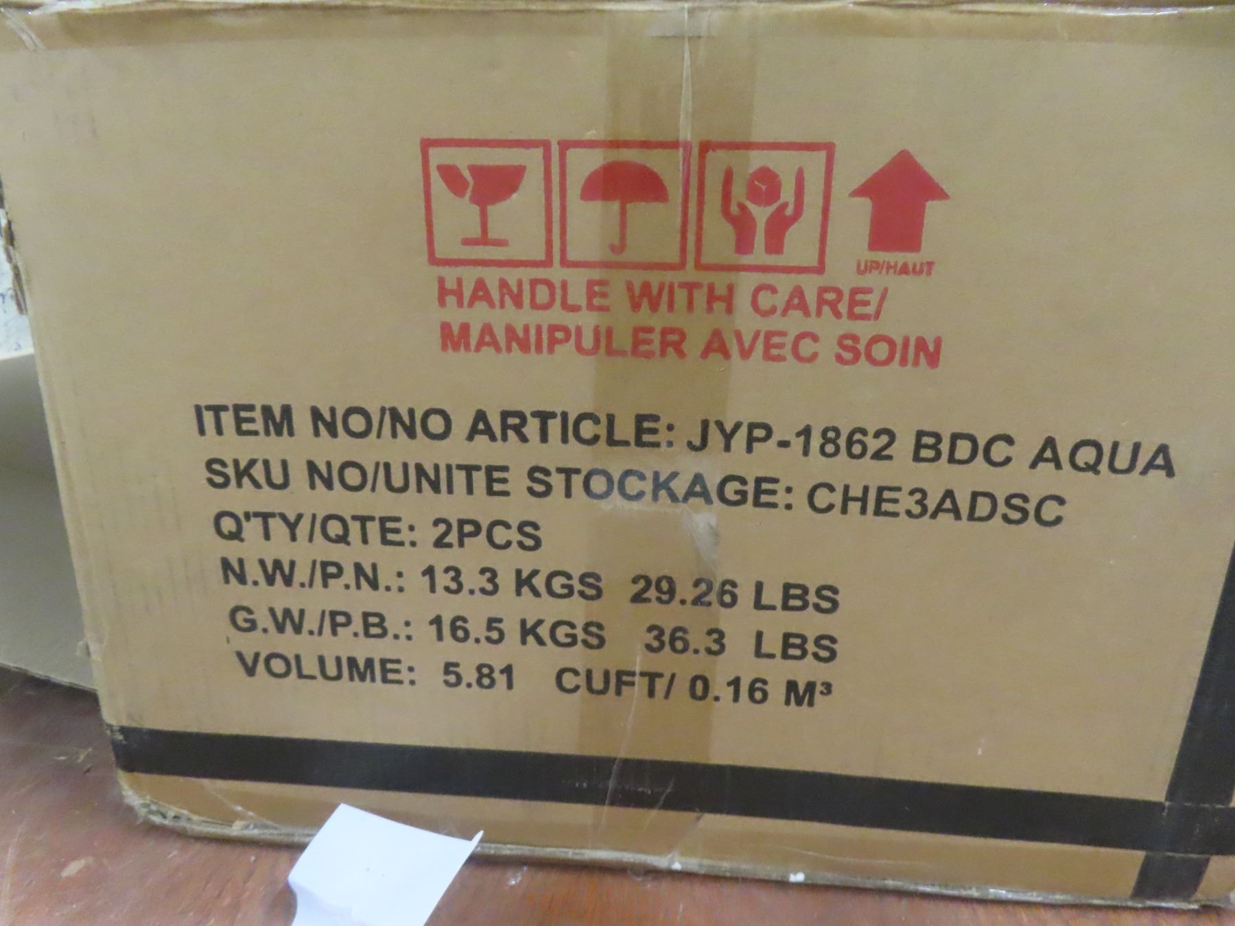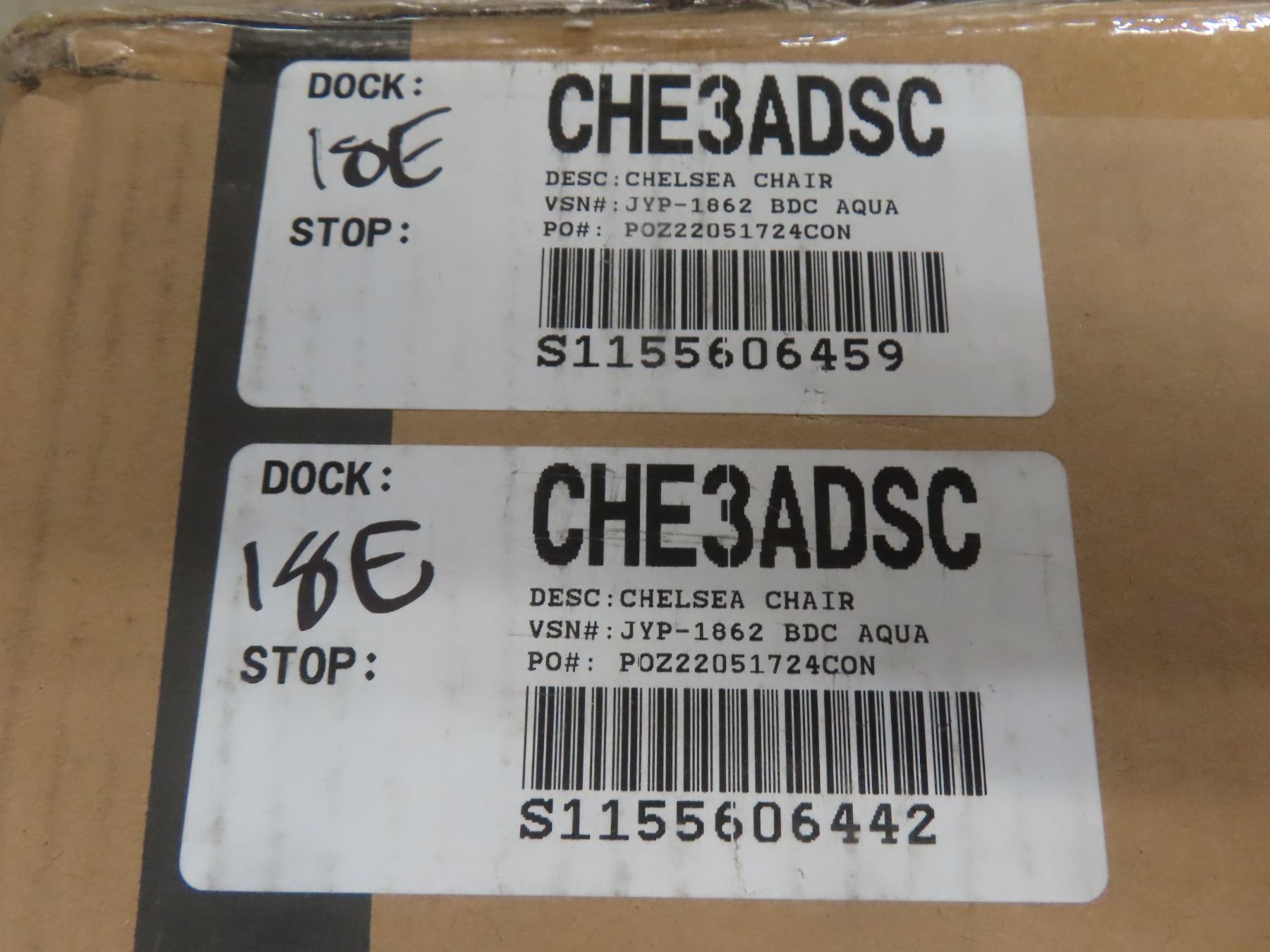 Set of Six Chelsea Chairs with Aqua Cushions, Unassembled New or Store Return