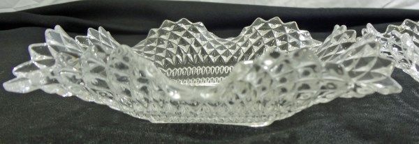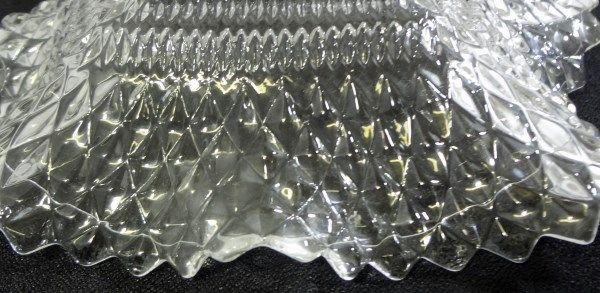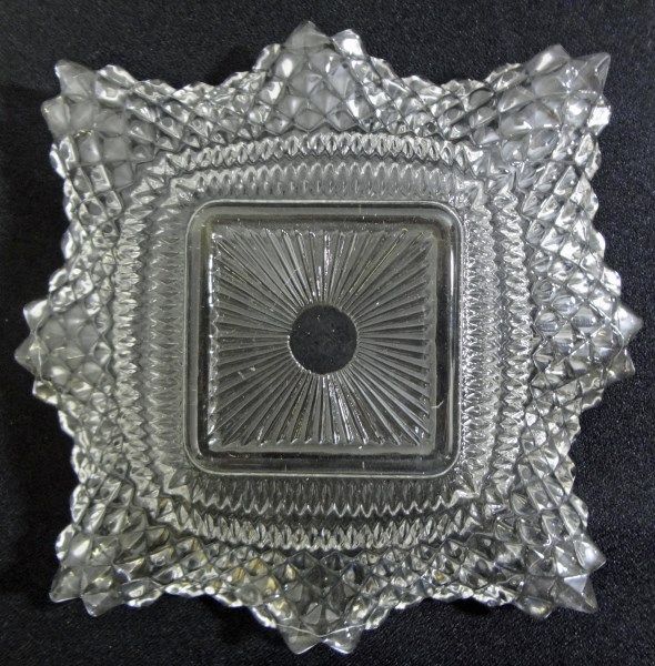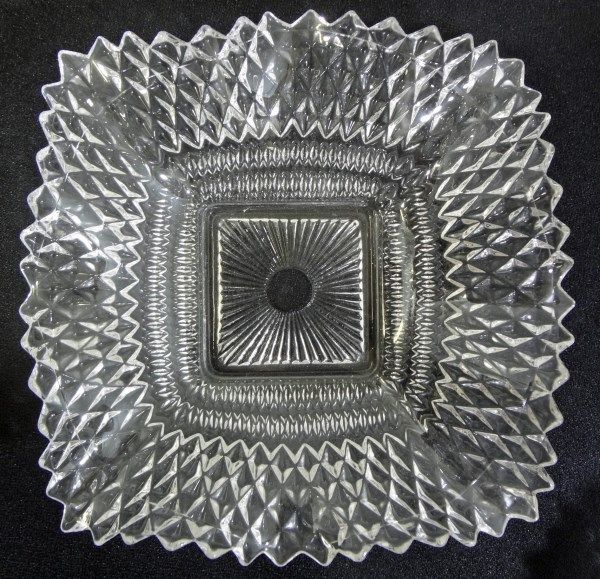 Set of two, 7" square sawtooth diamond depression glass bowls.