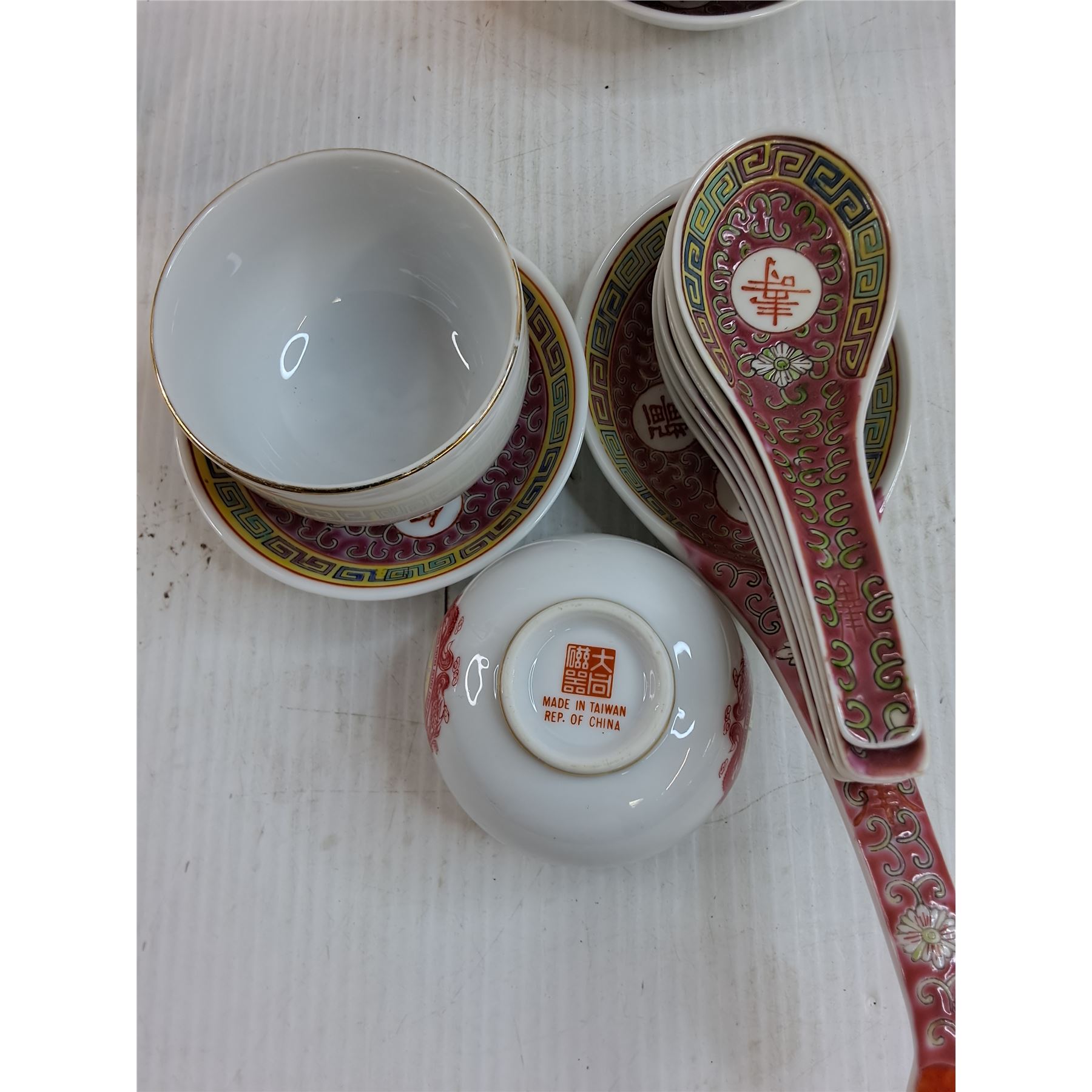 Set of Stoneware Dishes, "Asian" Dishes/Utensils, Ceramic Storage Set, Tongs, Towels - AS IS