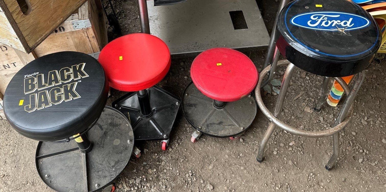Set of Stools - 2 Red Stools, Ford Stool, Black Jack