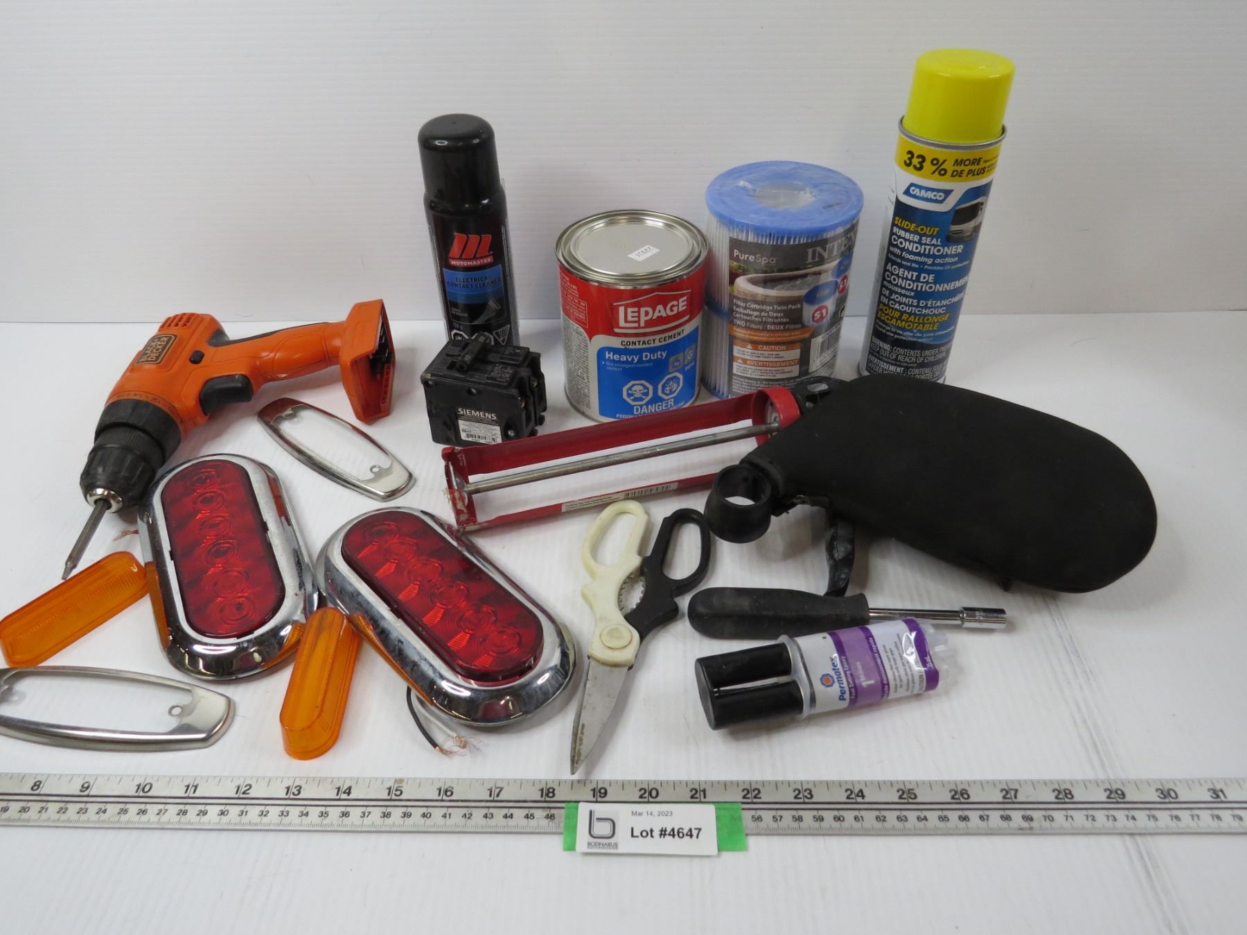 Set of Tail Lights and Reflectors, Caulking Gun, Drill +Misc.