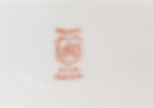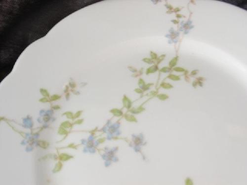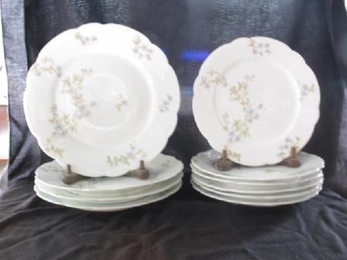 (Austria 19th Century) Set includes 6 salad plates and 4 dinner plates, made in Austria Mark verso "Carlsbad", handpainted floral motif with light blue flowers and green leaves, dia. 8" each