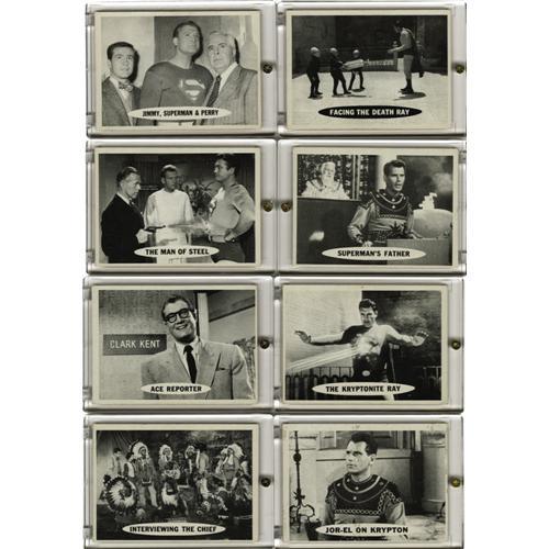 <B>Complete Set of "The Adventures of Superman" Trading Cards. (National Periodical Publications, circa 1960s).</B></I> A complete set featuring cards #1-66 featuring images from the classic 1950s television series, each in a hard plastic container and in Excellent condition. <BR><BR><B>Important notice:</B> Heritage usually auctions material at the rate of 200-250 lots per hour. On some occasions eBay Live bid software or the Internet may not be able to keep up with the pace of the auction. We recommend placing a realistic absentee bid now as insurance to avoid disappointment. Occasionally the auctioneer may eliminate or reject an eBay Live bid, and the auctioneer may also reopen a lot after the close of the eBay live bidding (usually because we missed an audience bid), and may reject your bid even if it shows you as the winning bidder. By bidding via eBay Live, you agree that Heritage may award the lot to another bidder at its sole discretion under the circumstances described above or any other reasonable circumstances. Since eBay bids are not shown to us until we open the lot on the floor, we treat those bids just like floor bids. In most cases the floor responds before the eBay bid is presented to us, due to Internet lag time, so for consistency we have made it a policy that floor bids are always considered first over tie eBay live bids. Also please note that all Heritage lots purchased through eBay Live carry a 22.5% Buyer's Premium. Please make sure you read the Terms and Conditions before you bid. This lot is being auctioned in conjunction with a live floor auction by Heritage Auction Galleries. All final auction and invoice information will be supplied by Heritage Auction Galleries, and all other information should be considered preliminary. Lot:41001 <BR><BR><B>Winning Notification and Billing:</B> After the FINAL session in this auction is complete, Heritage will send e-mail and snail mail invoices. This process normally takes several days. All final auction and invoice information will be supplied by Heritage Auction Galleries, and all other information should be considered preliminary. <BR><BR>This auction will be conducted on a live auction floor and over the Internet through eBay Live. If you choose to place an absentee bid, please take a moment to <font color='#0000ff'><u><a href='http://pages.ebay.com/liveauctions/help/before/laabsentee.html'>learn how eBay Live absentee bidding works</a></u></font><font color='#000000'>