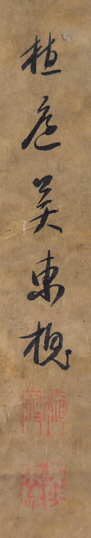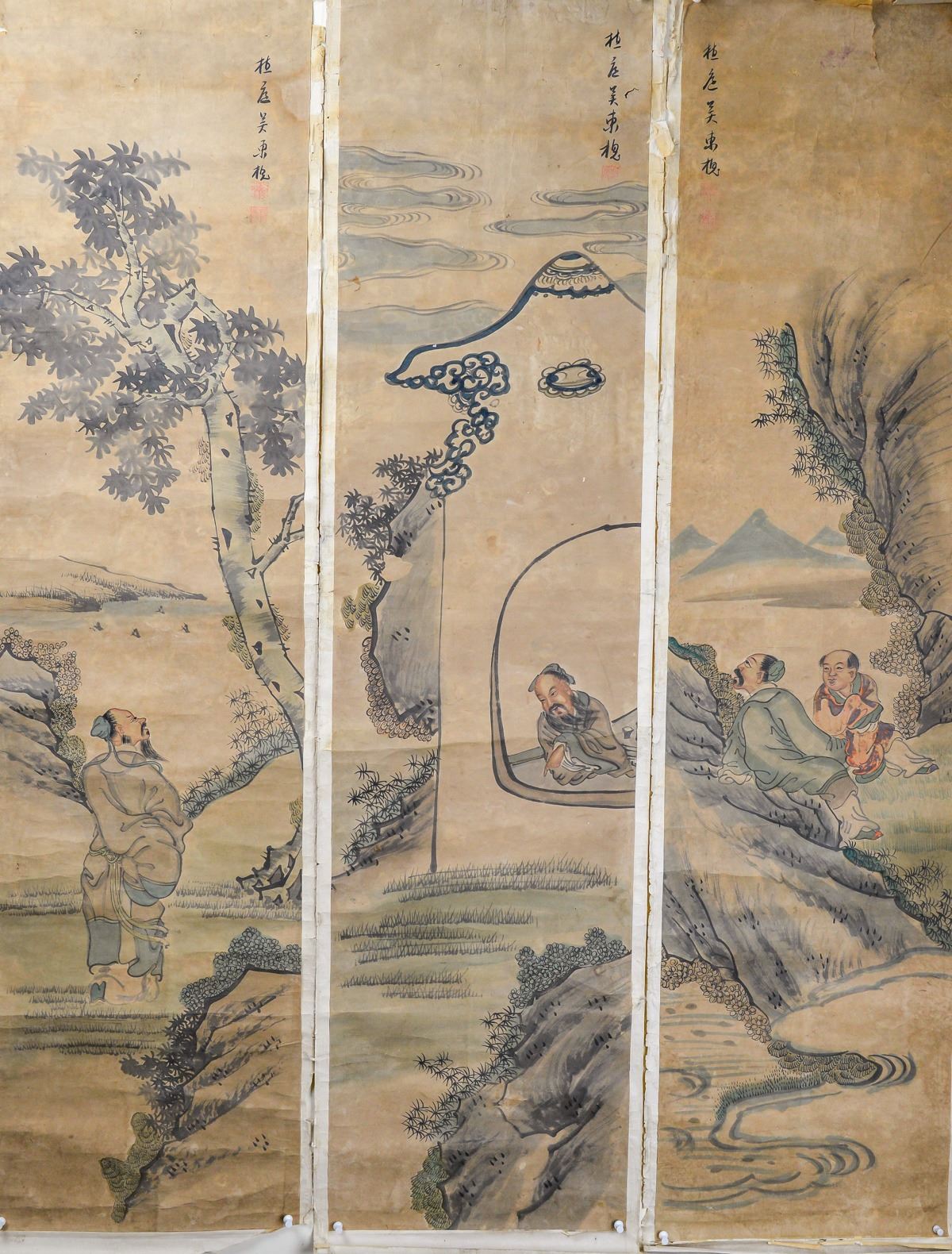 Hanging scroll, set of three Chinese watercolor paintings, ink and colour on paper; inscribed and signed with five seals (total); 131.5 x 32 cm. PROVENANCE: Property of a gentleman (Nagoya, Japan)