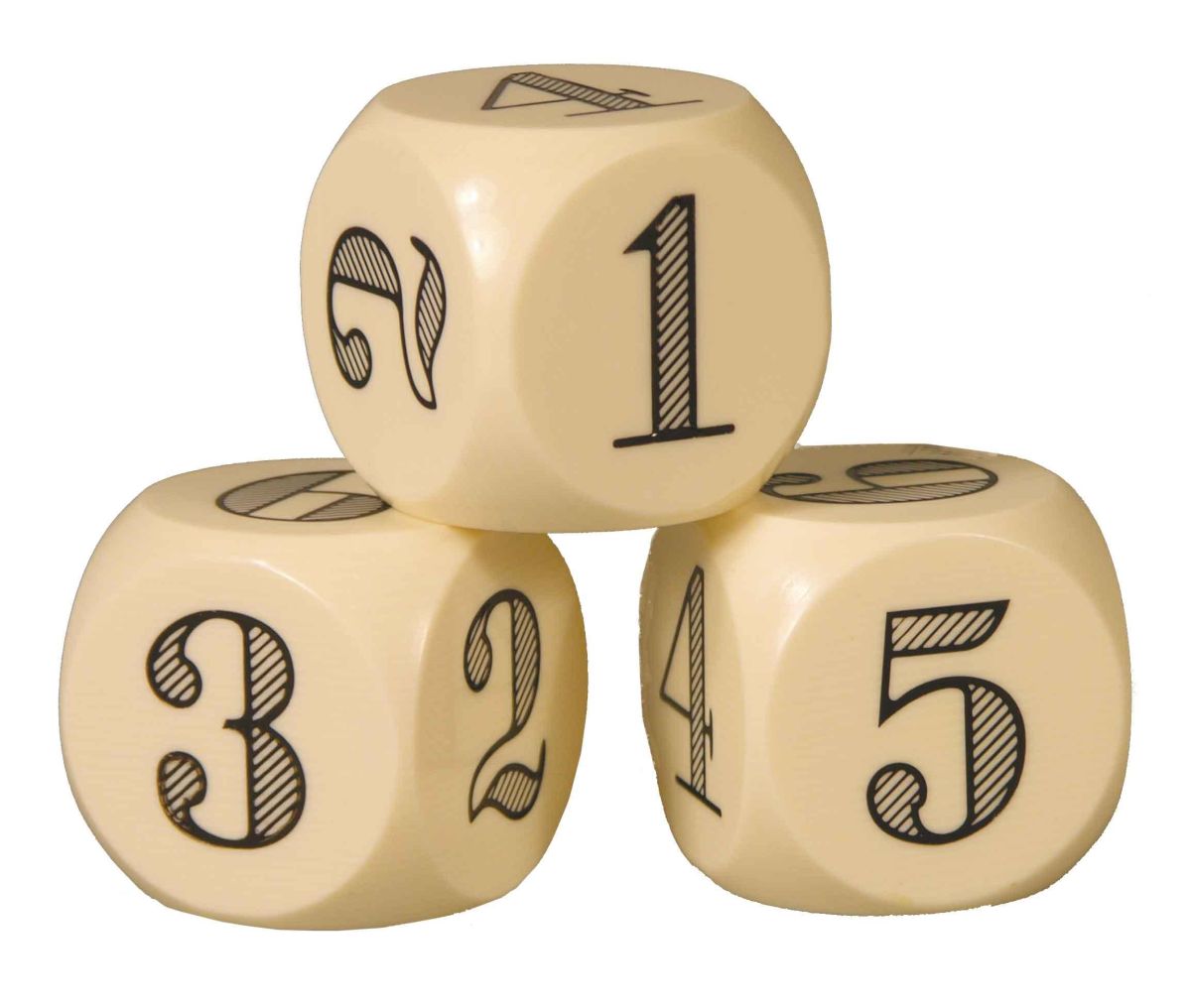 Set of Three Large Catalin Ball Dice. Used in various dice games, such as hazard and chuck-a-luck. Near mint condition. Each measures 1 1/4 inch square.