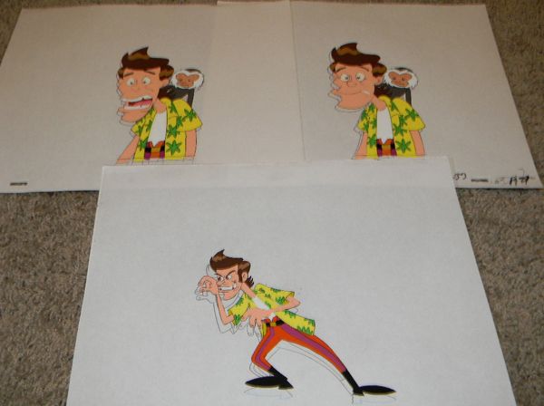 Lot of three original hand painted cels and matching drawings each showing Jim Carrey's character. This cartoon was Seth McFarlane's first writing job. This item comes with a certificate of authenticity good for the life of the piece.