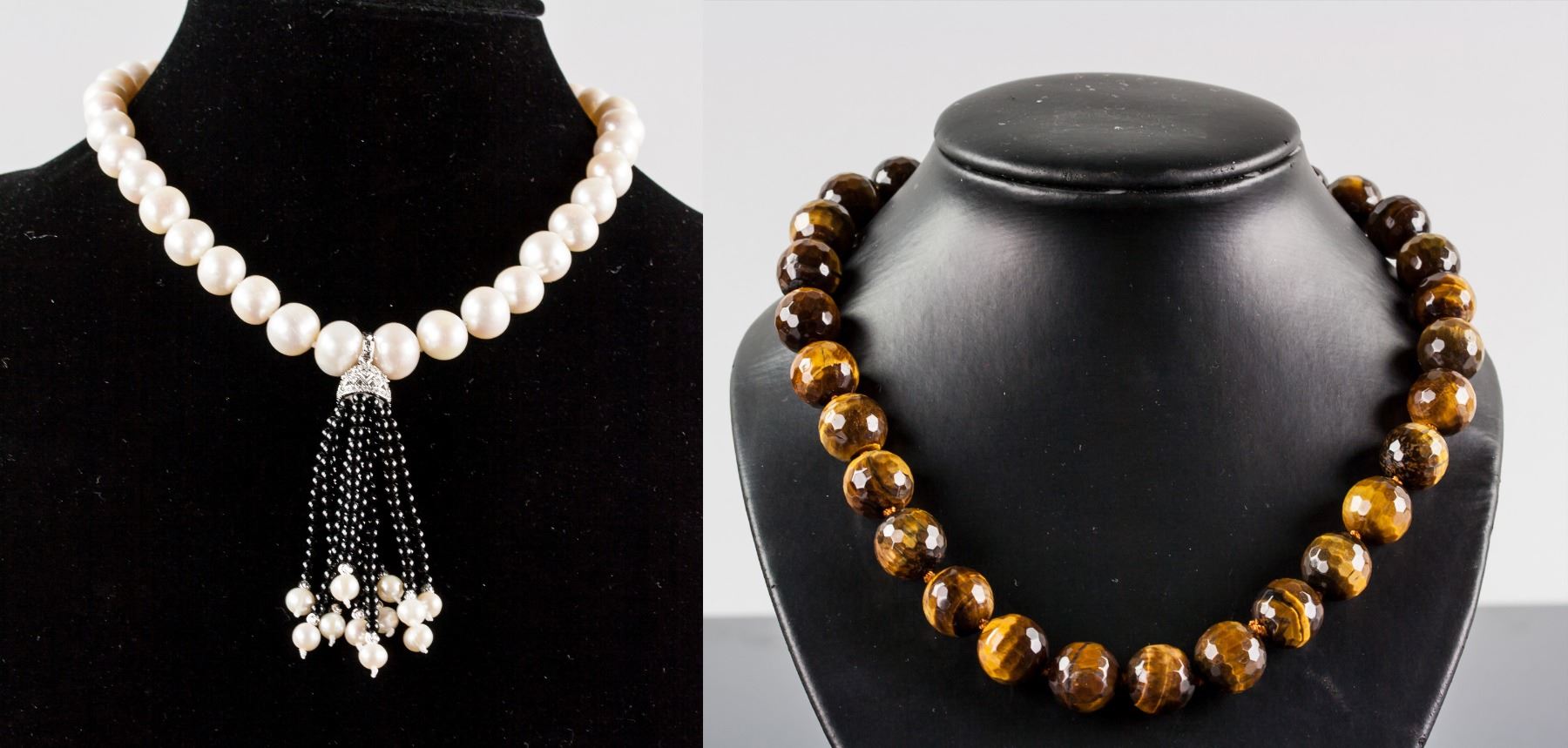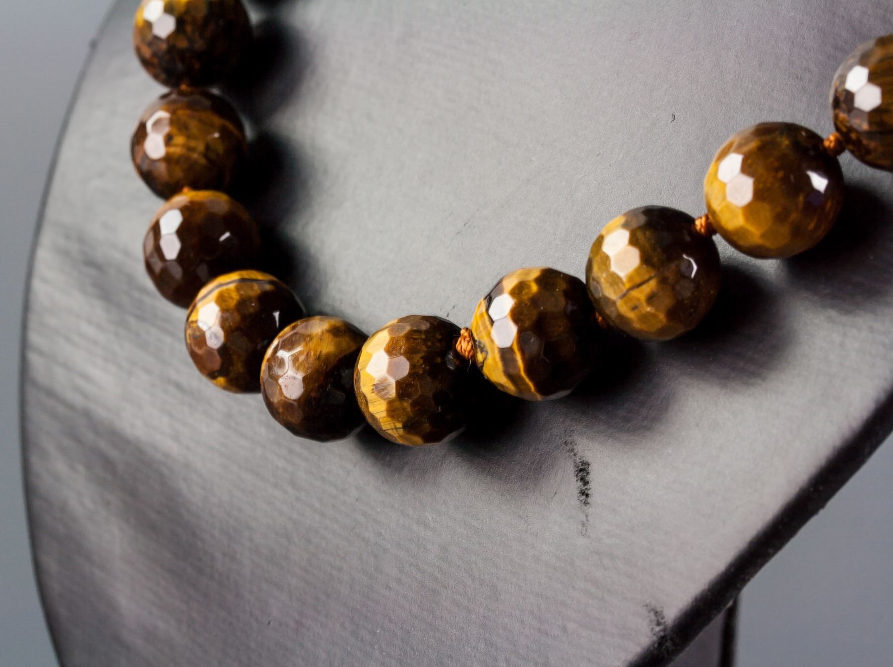 Stamped 925 silver clasp necklace; set with natural quartz chatoyant brown colored; certified replacement value $655; Diameter: 14 mm, 105.02 grams