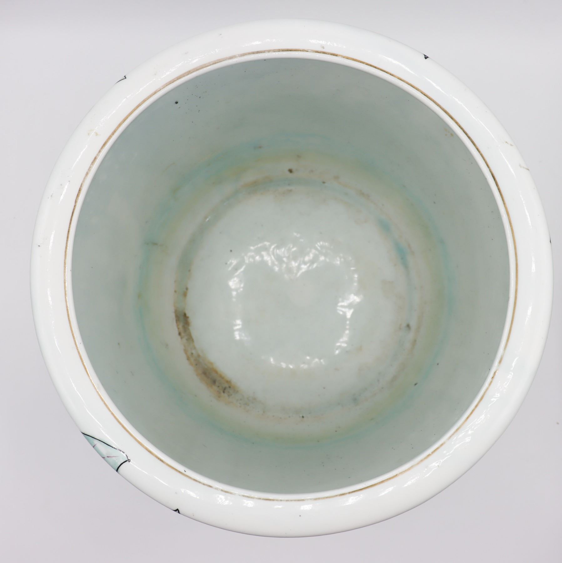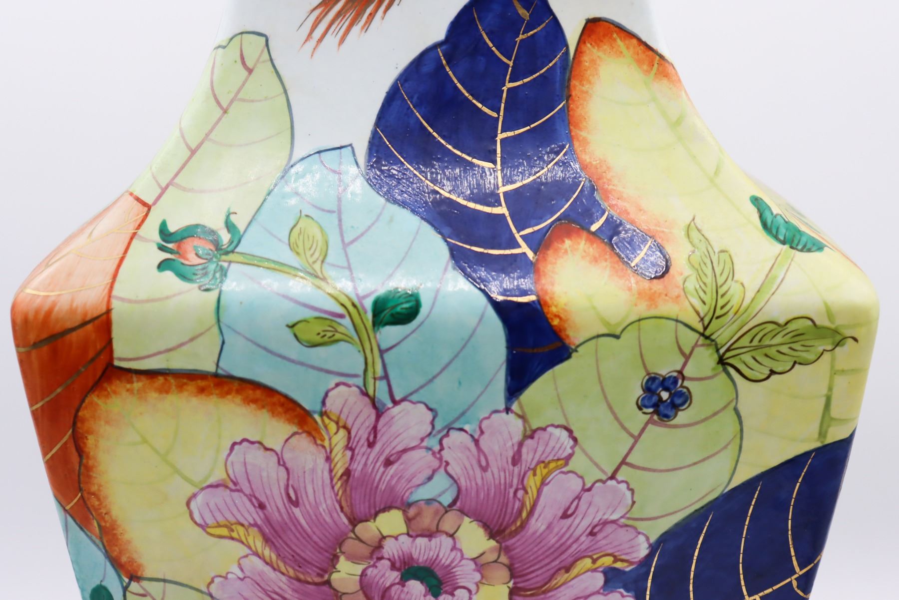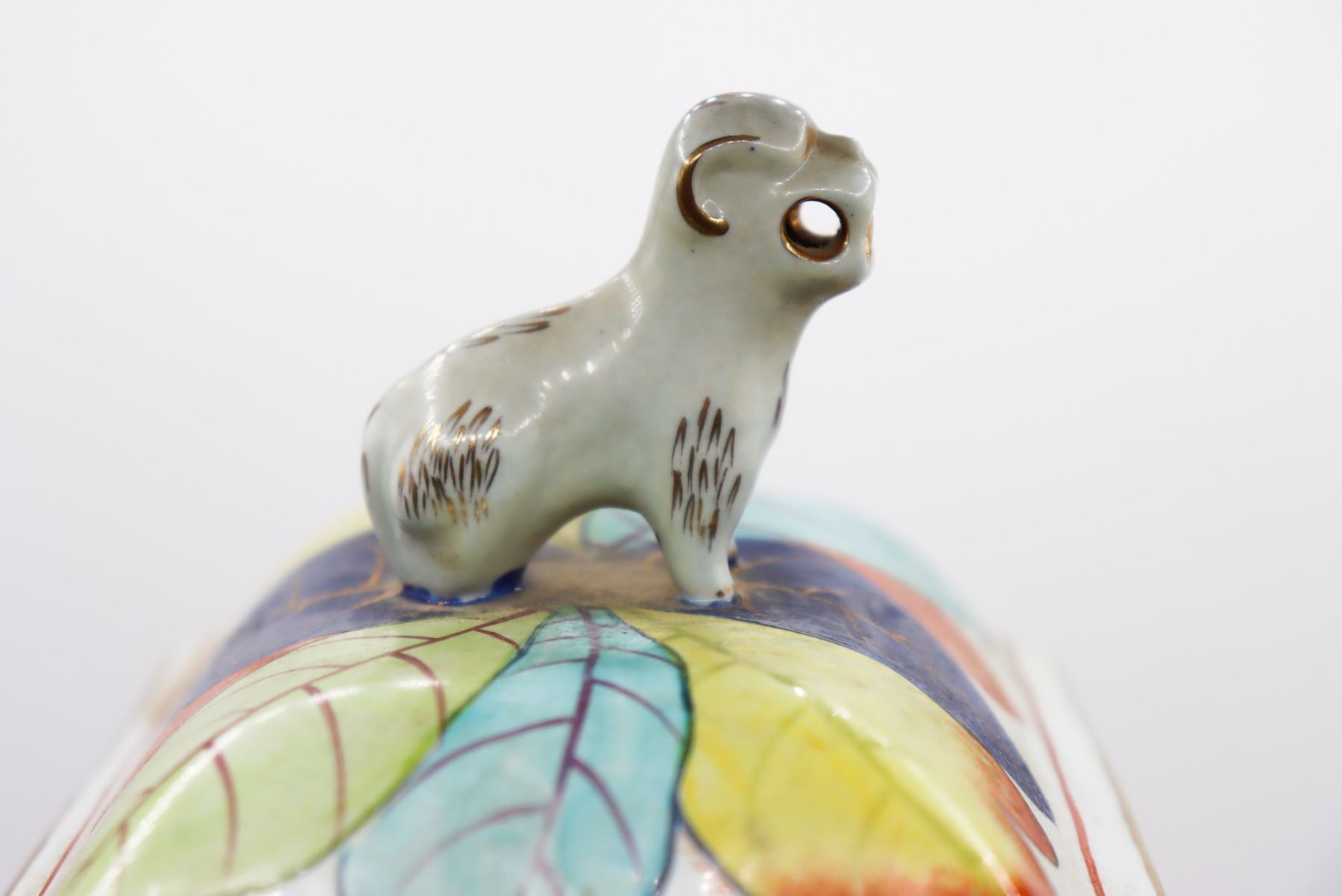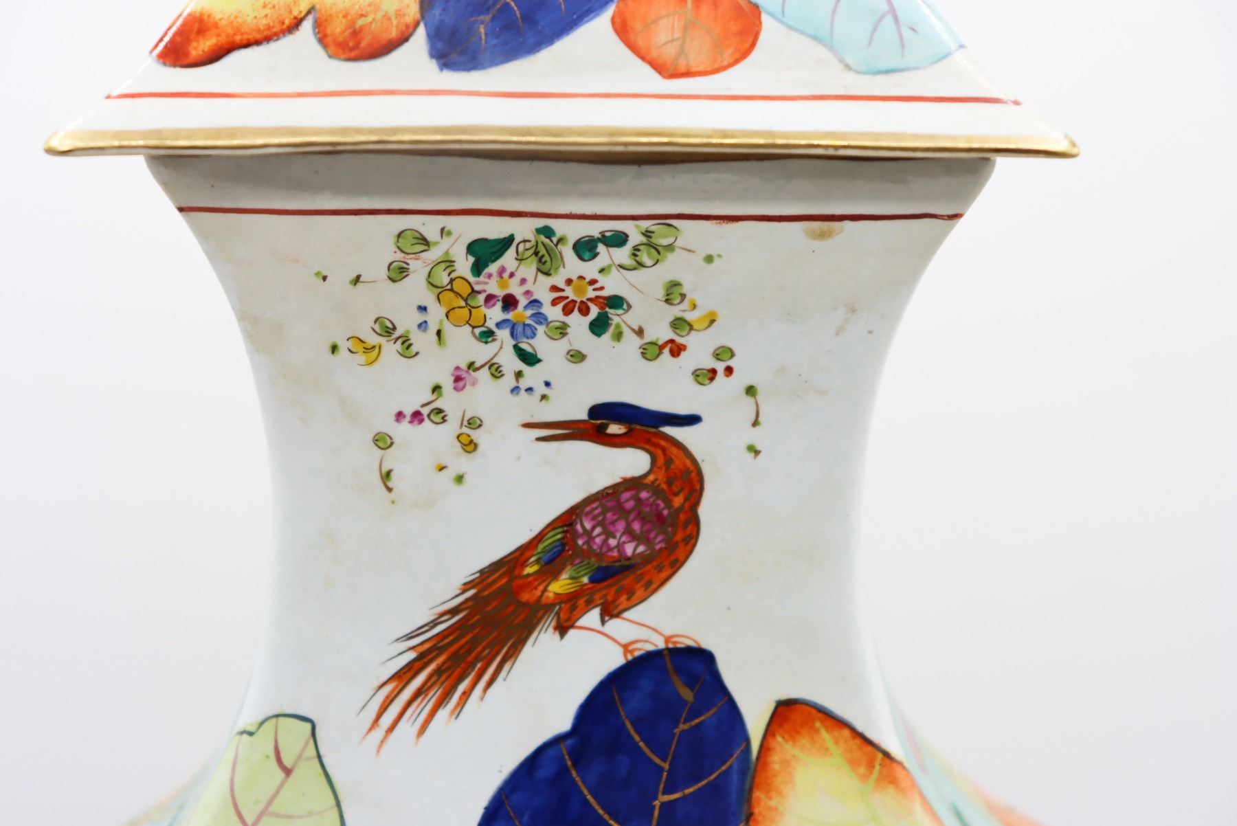 Matching pair of Chinese hand painted floral jar w lid and bowl. Lid has a foo dog on the top.