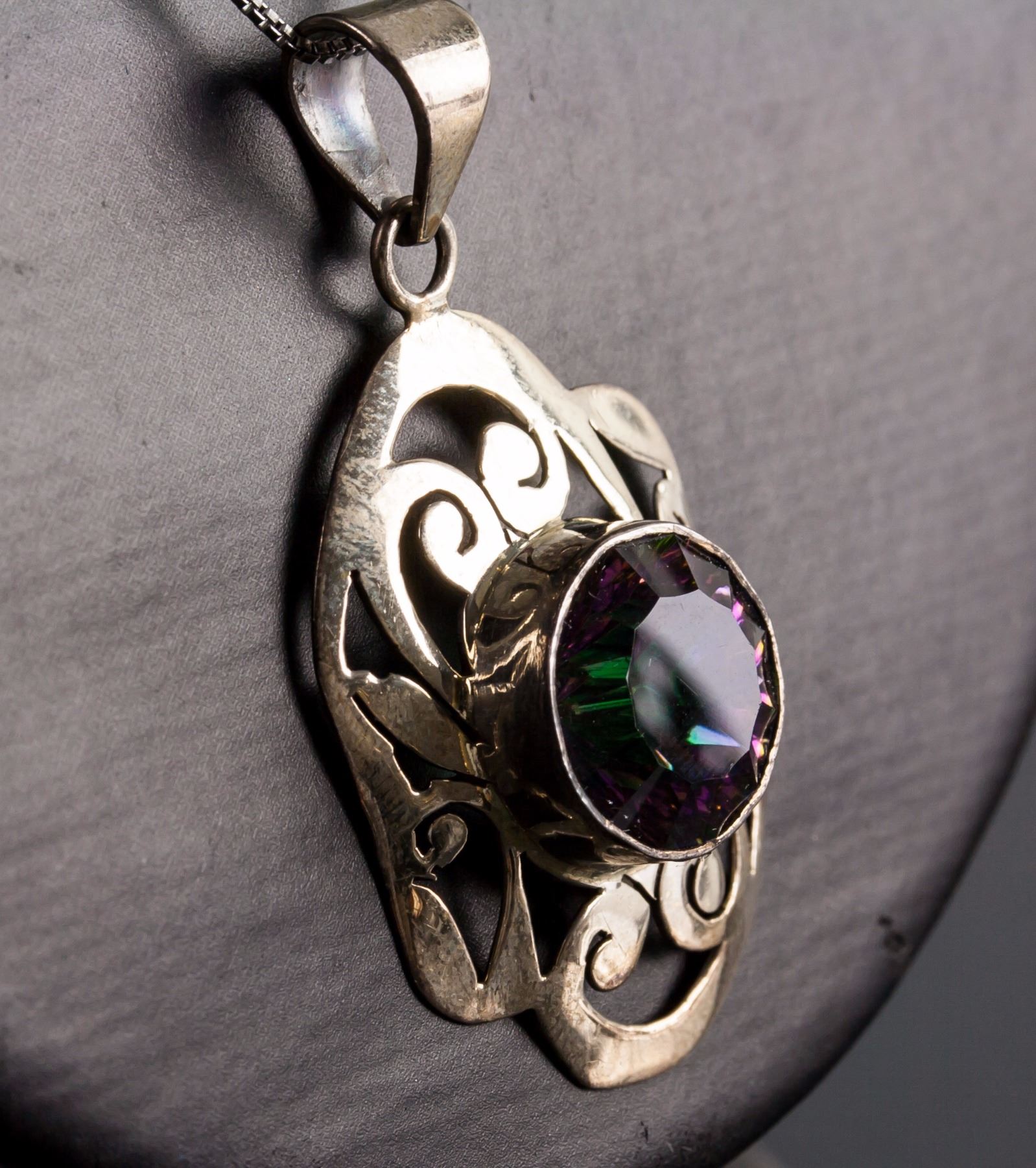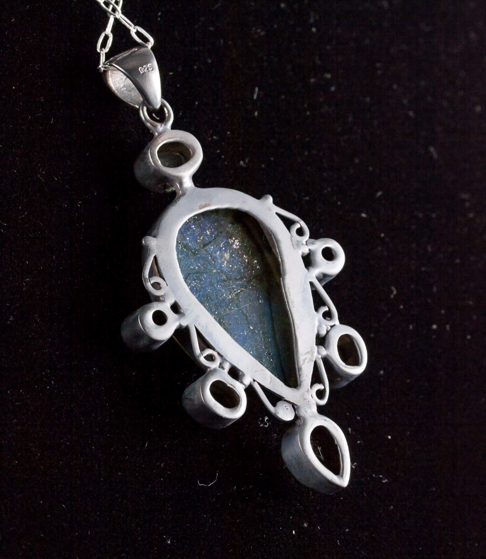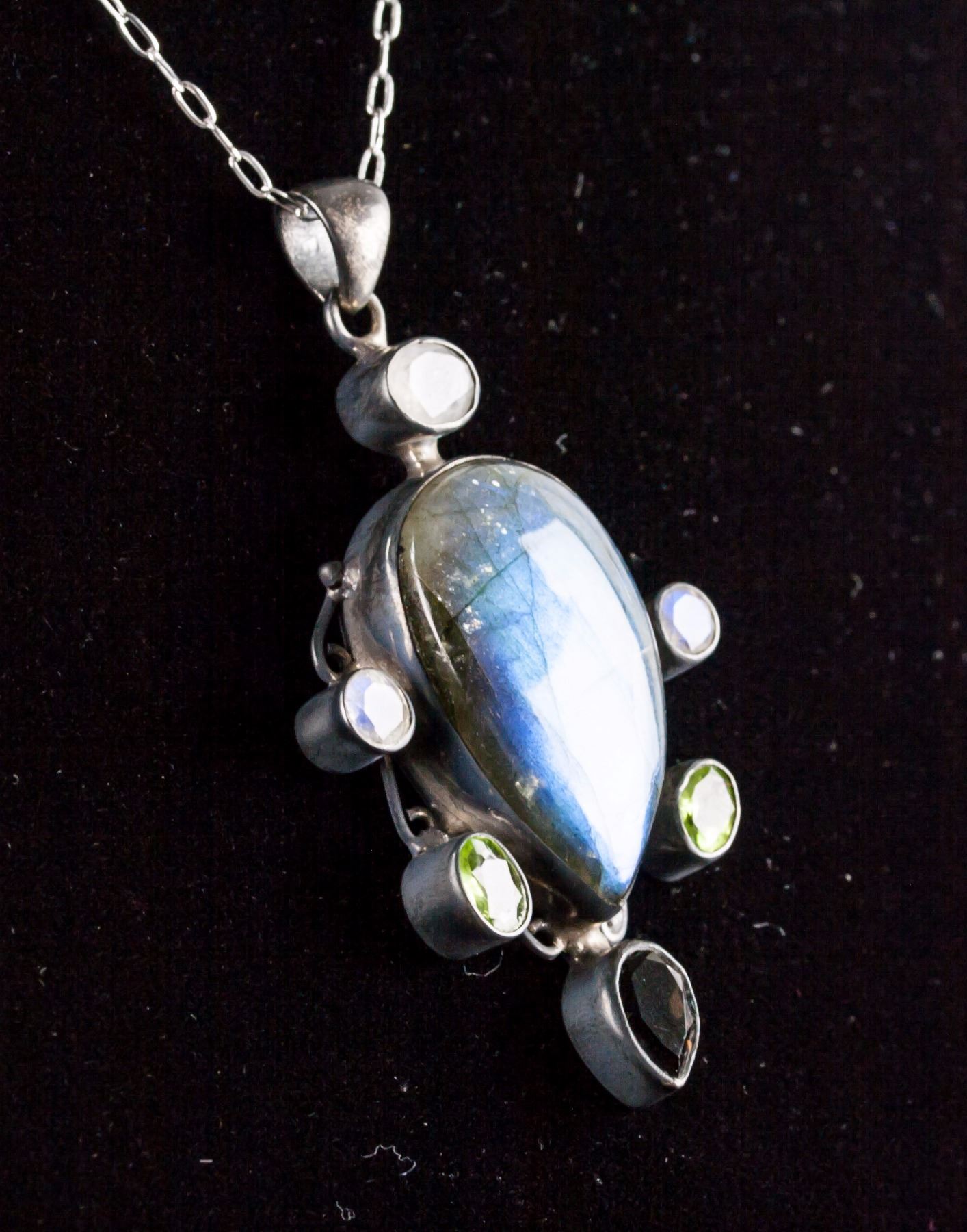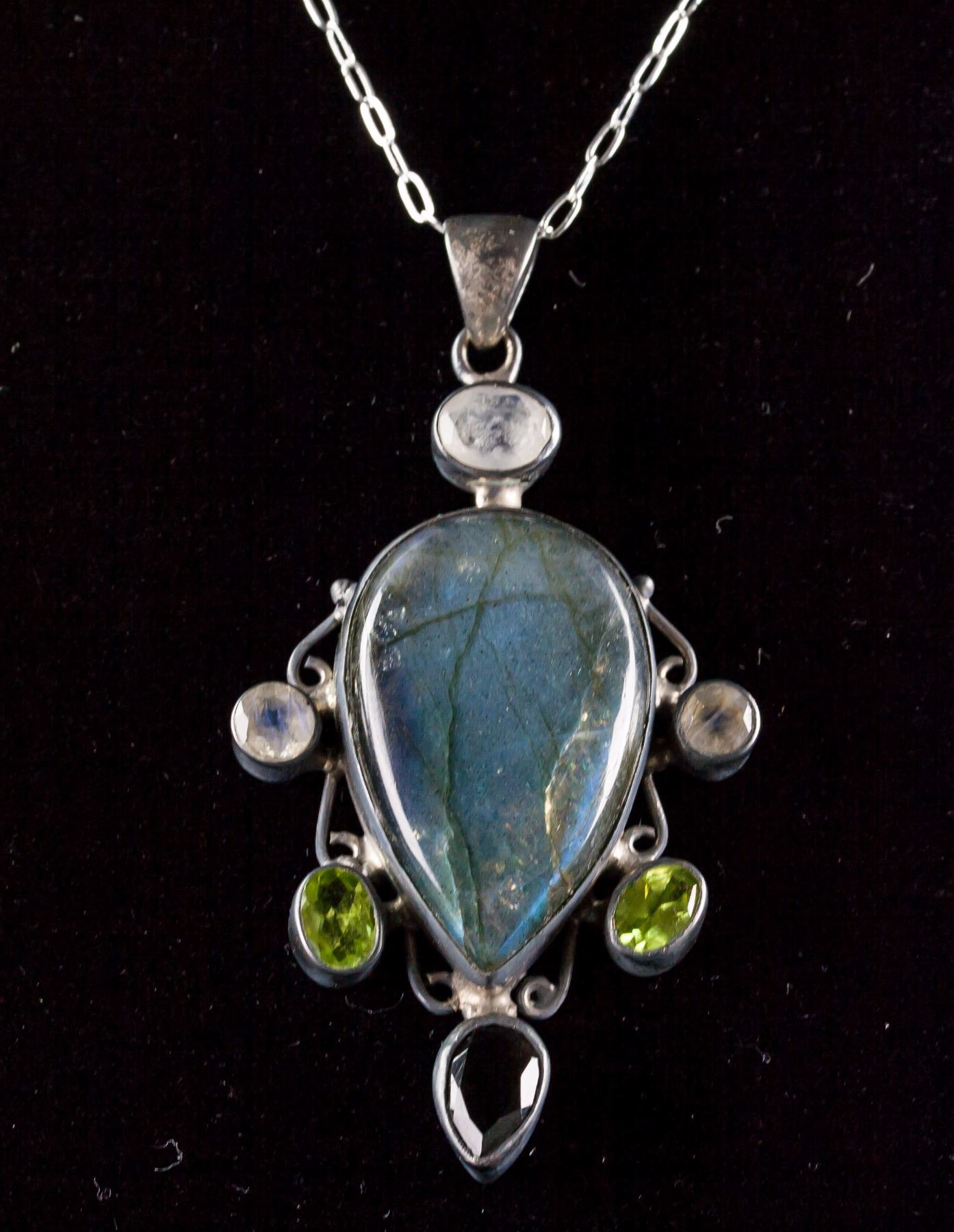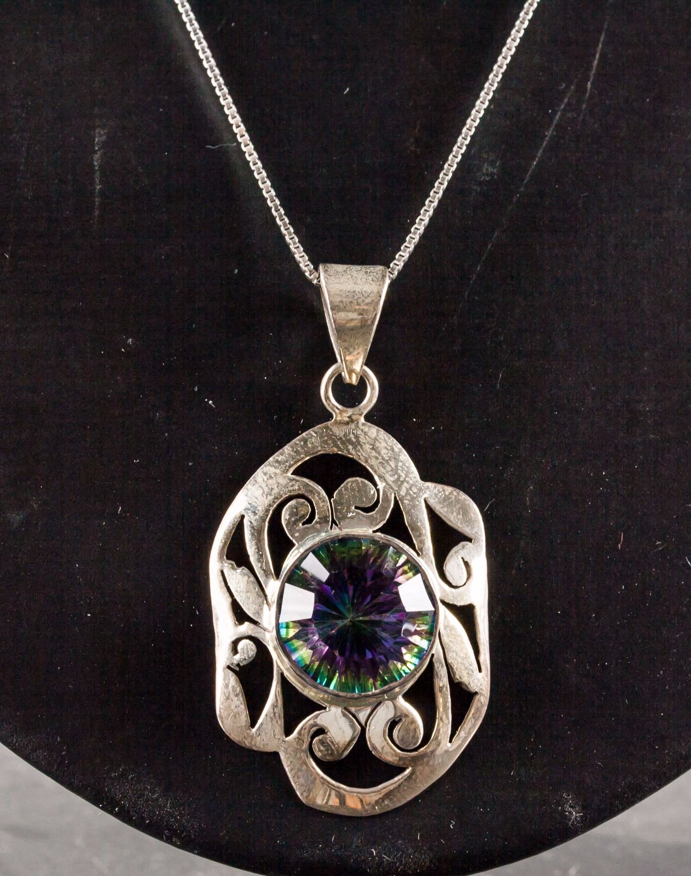 Sterling silver pendant with chain necklace; set with multi-gemstones; retail value $300; 19.00 grams