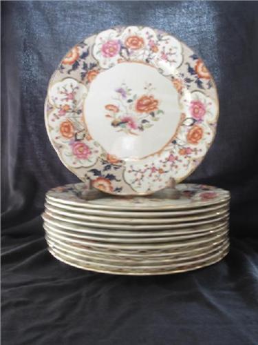 (England 19th Century) Colorfully glazed and gilt floral motif, mark verso "SIVA England 7528", dia. 9"each.