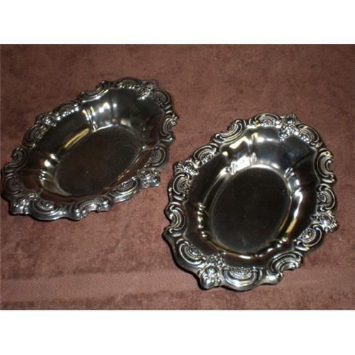 Set of Two Candy Trays Raised Flower Design. They came as a wedding gift in 1984 and are raised flower pattern and make great little candy trays, etc. They are 7.5" L X 5.5" W and 1.25" H. They are in really nice condition and I don't see any markings or makers name, so may not be the real expensive ones, but they do look nice and stand out. Great for whatever you want to put in them. Hope you like them. Need a good polishing and they will shine nice. LOWERED RESERVE TO SELL. HAVING OUR ONCE A YEAR SALE, CLEARING OFF OUR SHELFS, AND EVERYTHING IS LOWERED IN PRICE TO SELL. SOME ITEMS WE WILL CONTACT HIGH BIDDER AFTER AUCTION TO SELL IT TO THEM. HOPE YOU ENJOY THEM. NOTHING WRONG WITH THEM, JUST HAVING OUR SALE, AND CLOSING OUT A FEW ESTATE ITEMS WE STILL HAVE. GOOD LUCK IN BIDDING AND HOPE YOU WIN SOME.