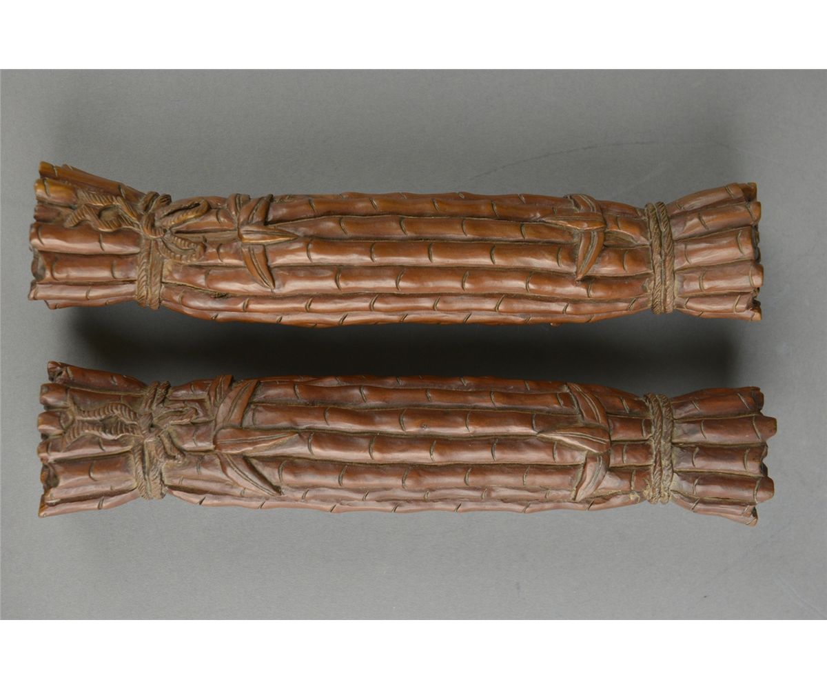 Set of two Chinese ceramic paper weights; in bamboo form; L: 24 c, D: 4 cm, 281 grams (each)