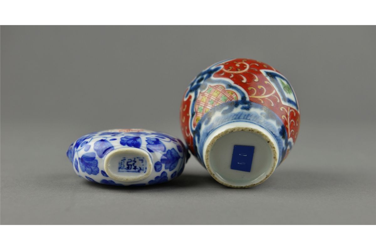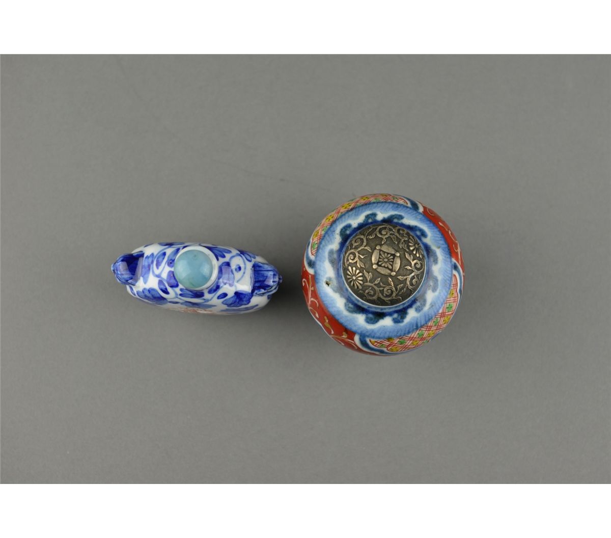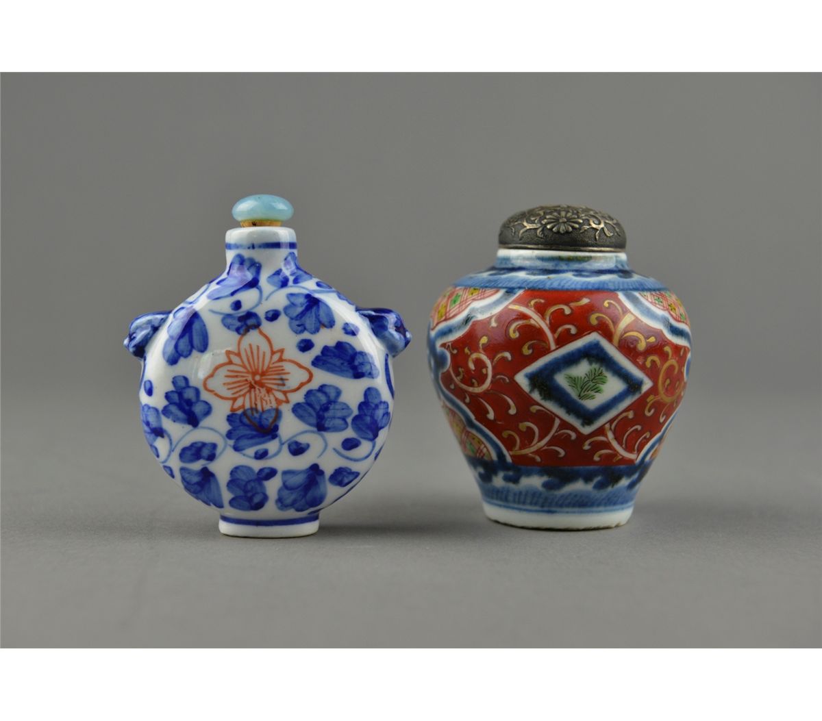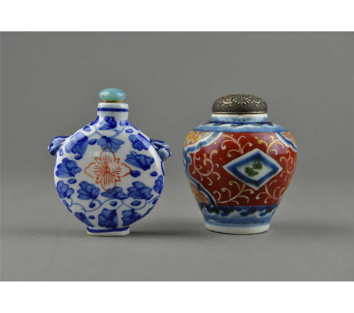 Set of two Chinese porcelain snuff bottle and jar with lid; H: 7 cm (snuff bottle); H: 7 cm (jar). Provenance: Liao Collection Vancouver