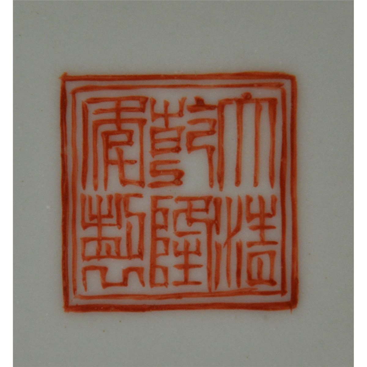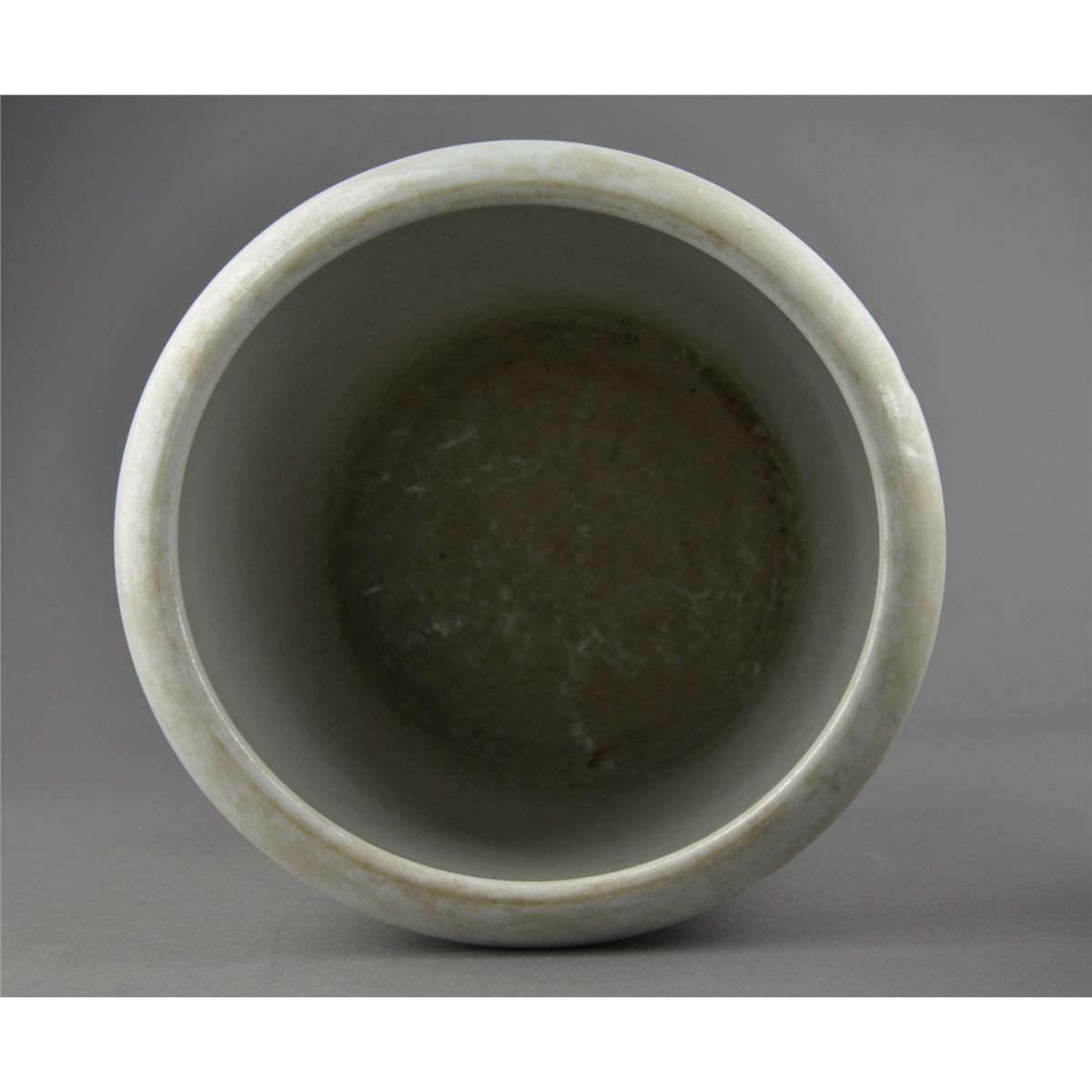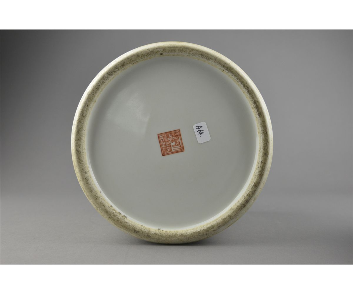Set of two Chinese porcelain brush pot and fish bowl; D: 26 cm, H: 15 cm (fish bowl); D: 17.5 cm, H: 21 cm (brush pot)