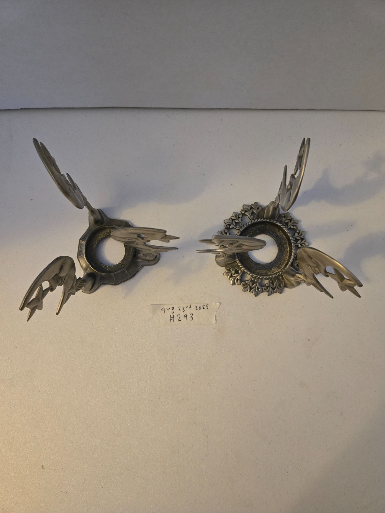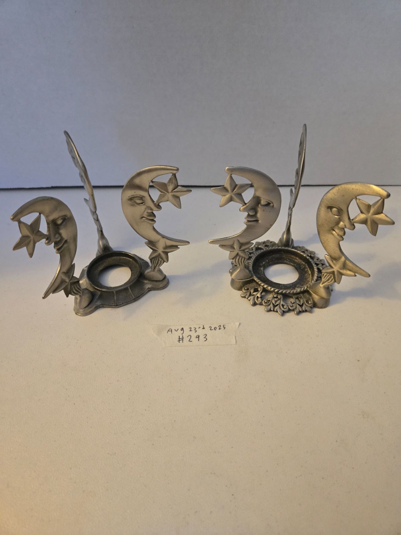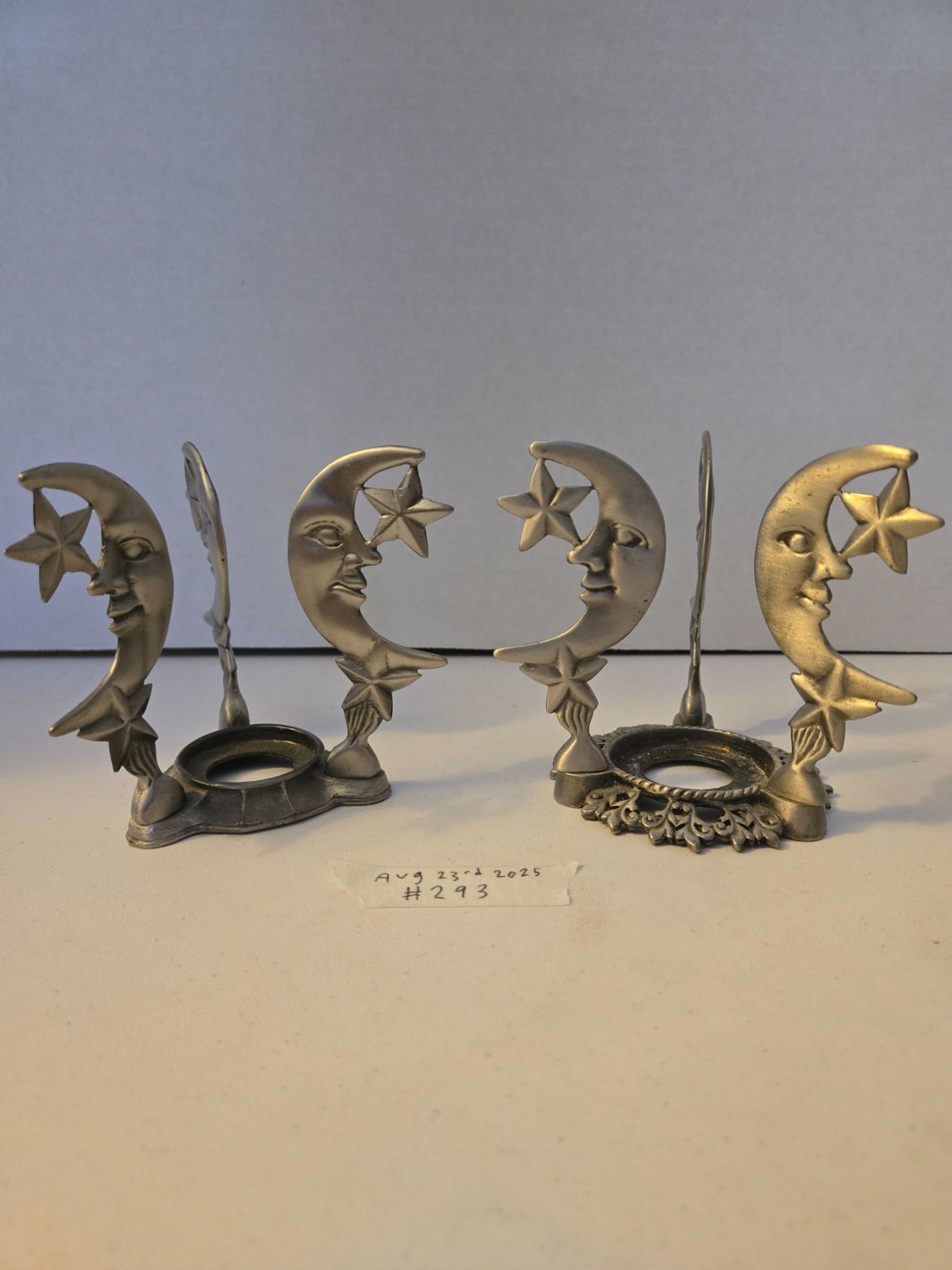Set of Two Vintage Pewter Moon and Stars Celestial Stands
