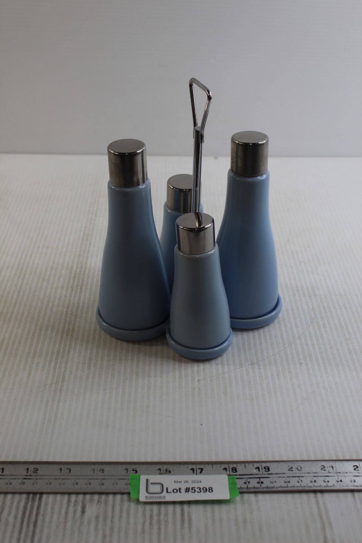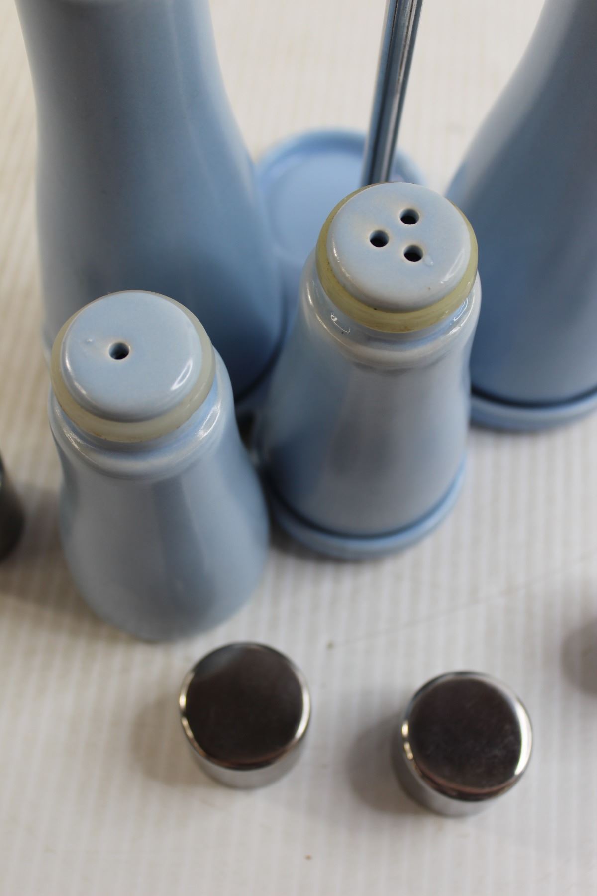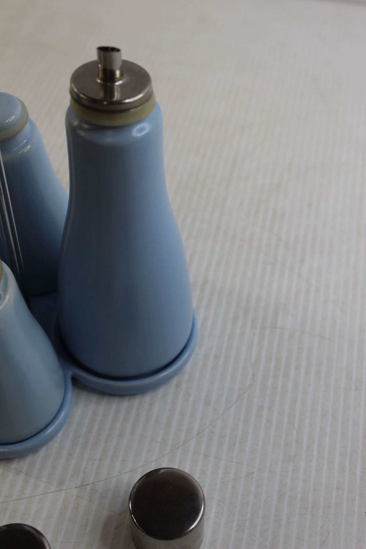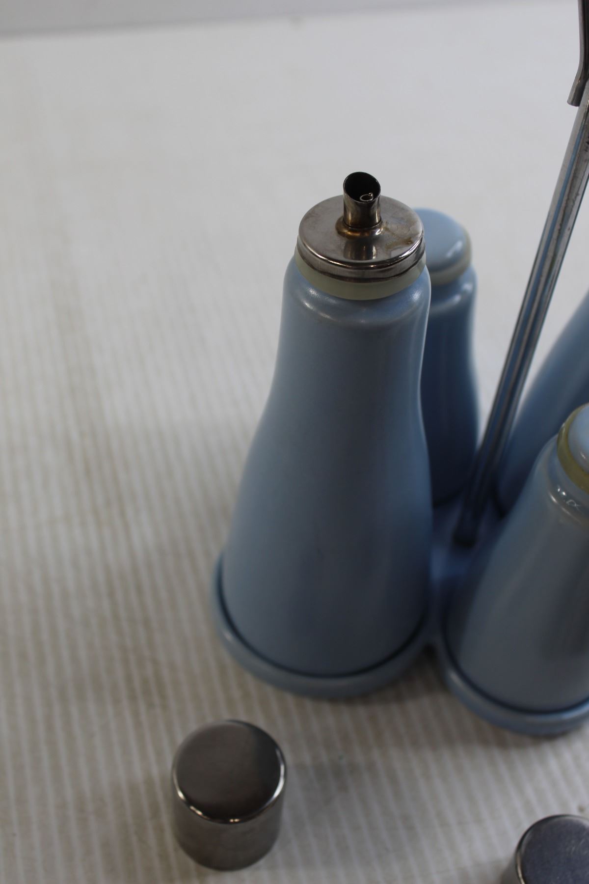 Set of Vinegar and Oil Cruets and Salt and Pepper Shakers