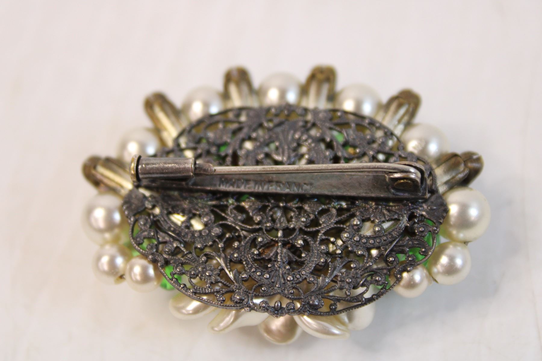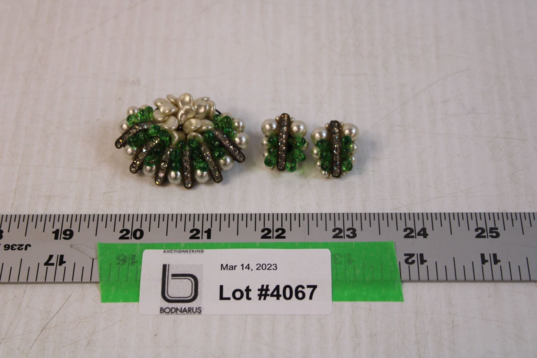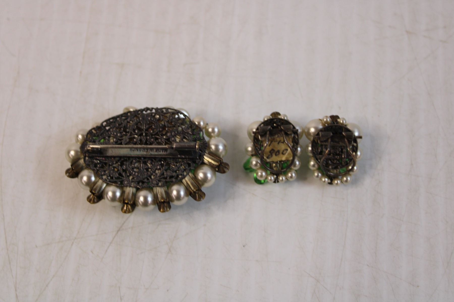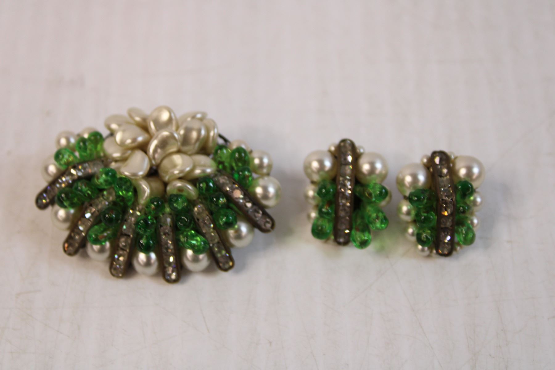 Set of Vintage Rhinestone Brooch and Clip On Earrings Set - Made in France