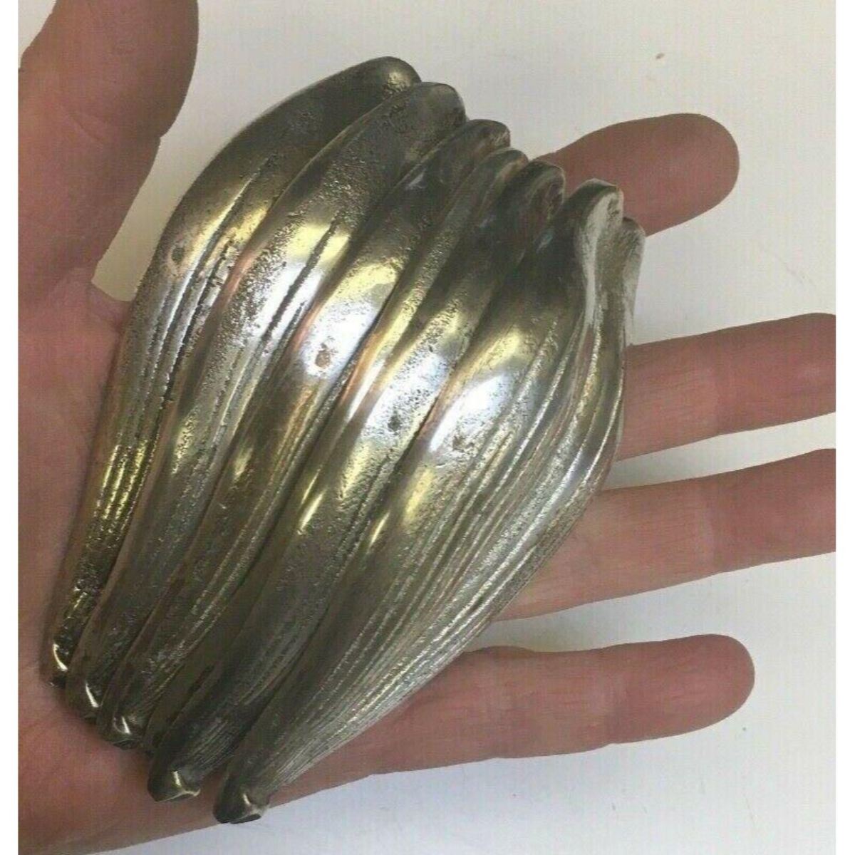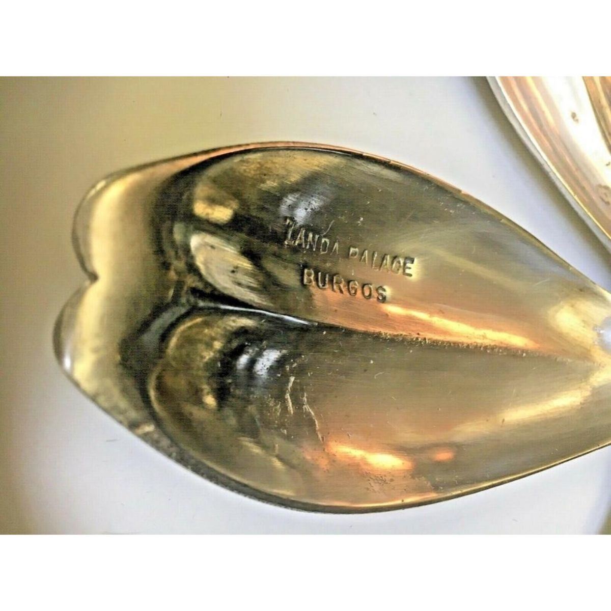 Vintage 1920'sset of sixsilvered bronze,leaf form,nesting trays, ashtrays,taken from the Landa Palace, Burgos Spain in the 1940's.Stamped "LandaPalace Bugos" on each tray. Approx 4 1/4" L.