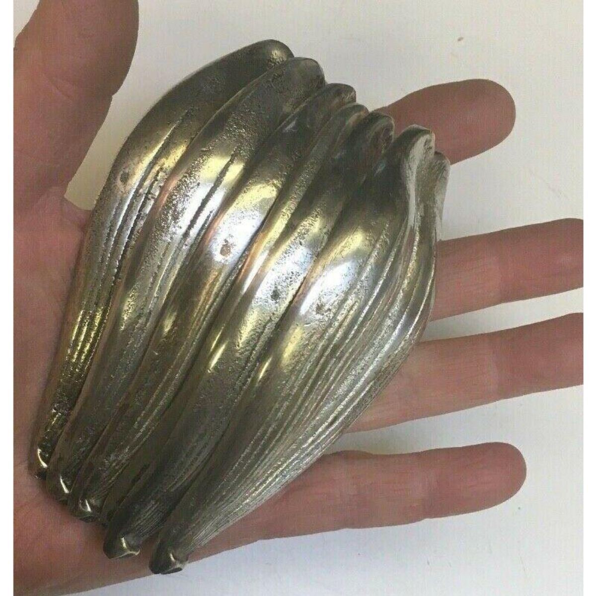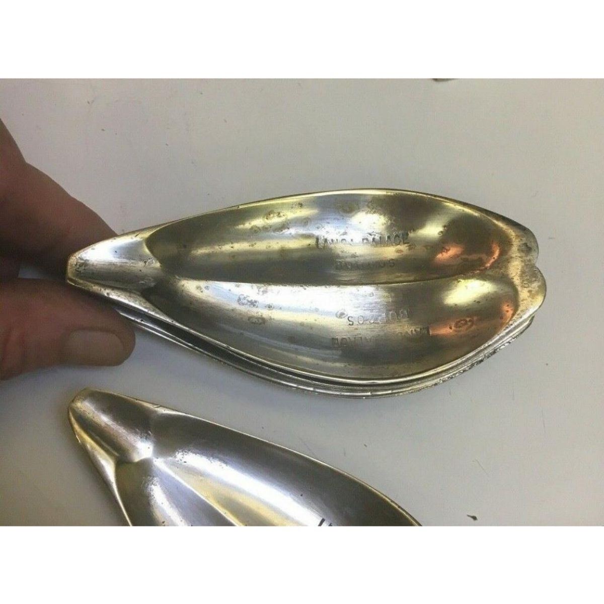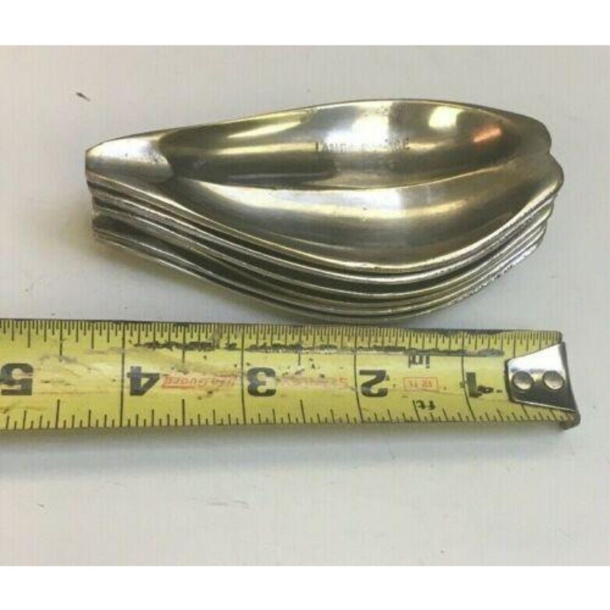 Vintage 1920's set of six silvered bronze, leaf form, nesting trays, ashtrays, taken from the Landa Palace, Burgos Spain in the 1940's. Stamped "Landa Palace Bugos" on each tray. Approx 4 1/4" L.