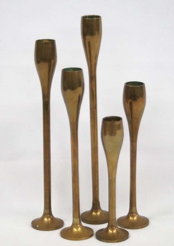 Set of Vintage Taiwanese Brass Candleholders, sizes range from 5.5''H to 9.25''H