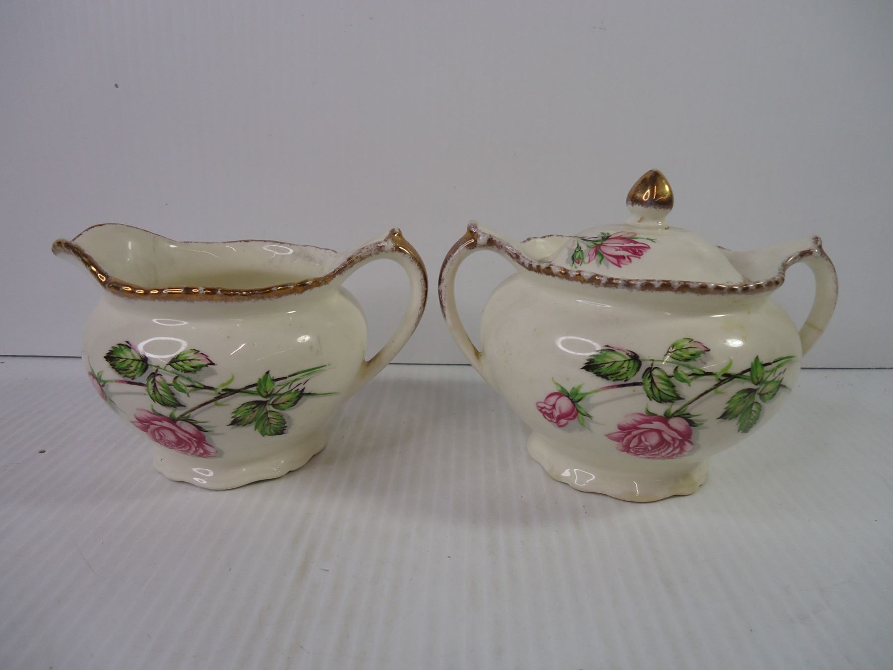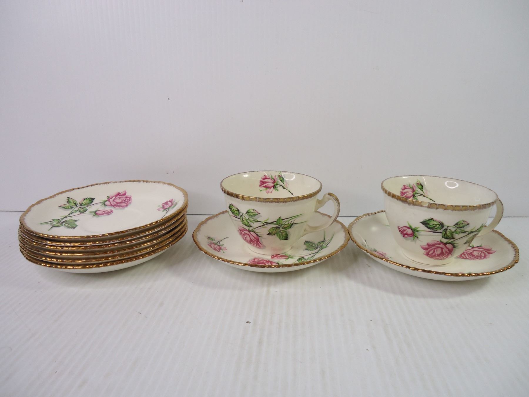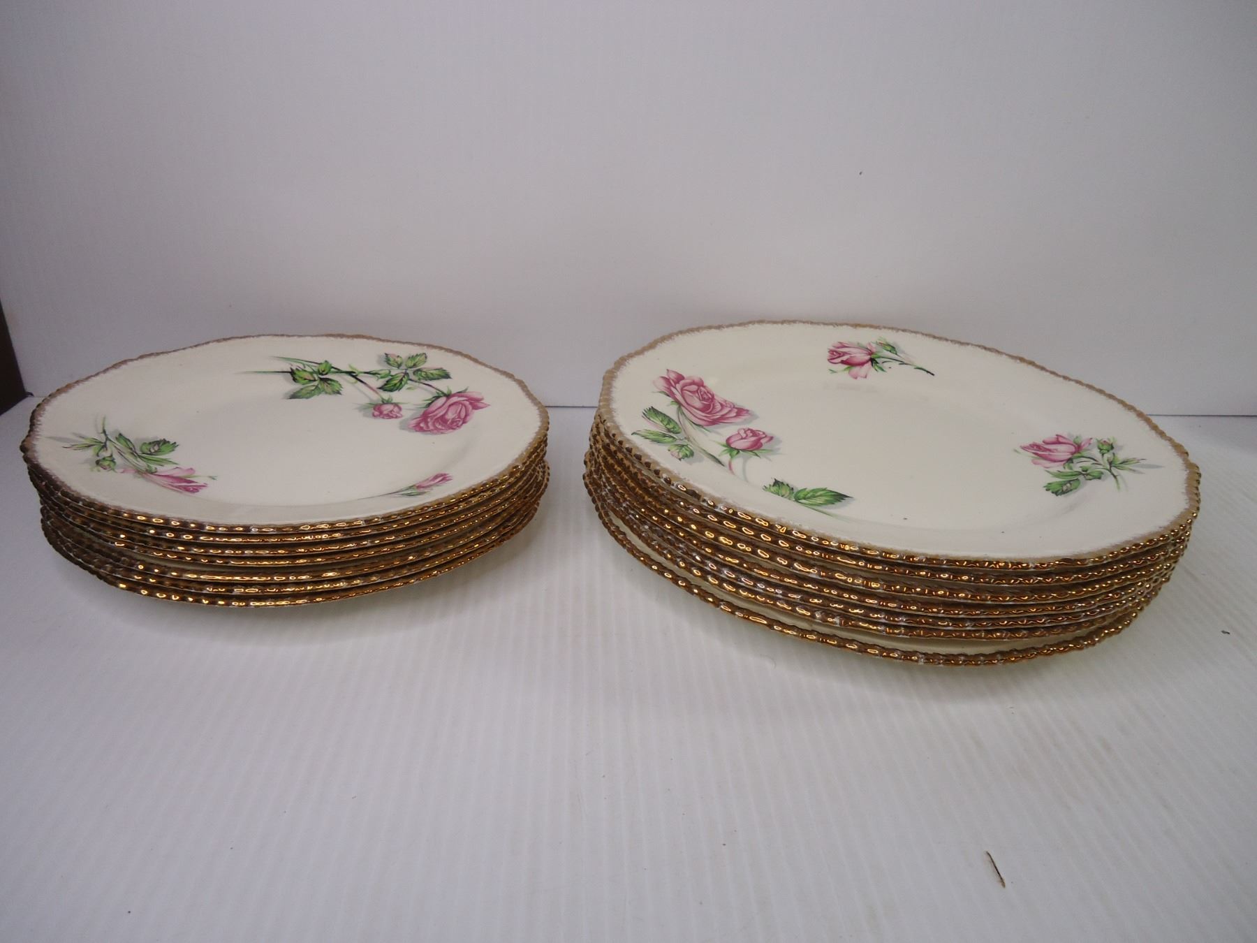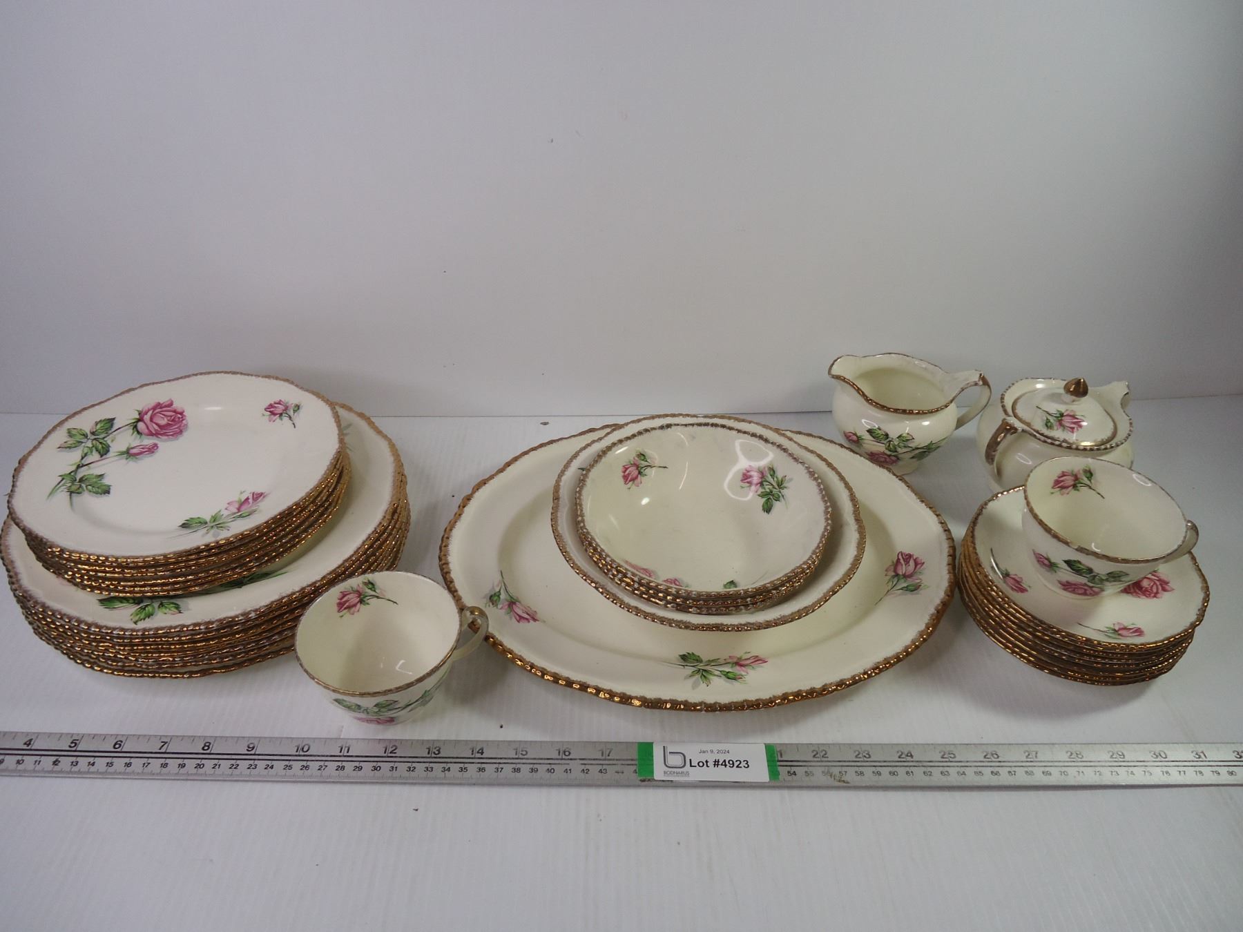 Set of Wood Ivory Ware Pink Rose Embossed Edge Gold Trim-31 pieces in total